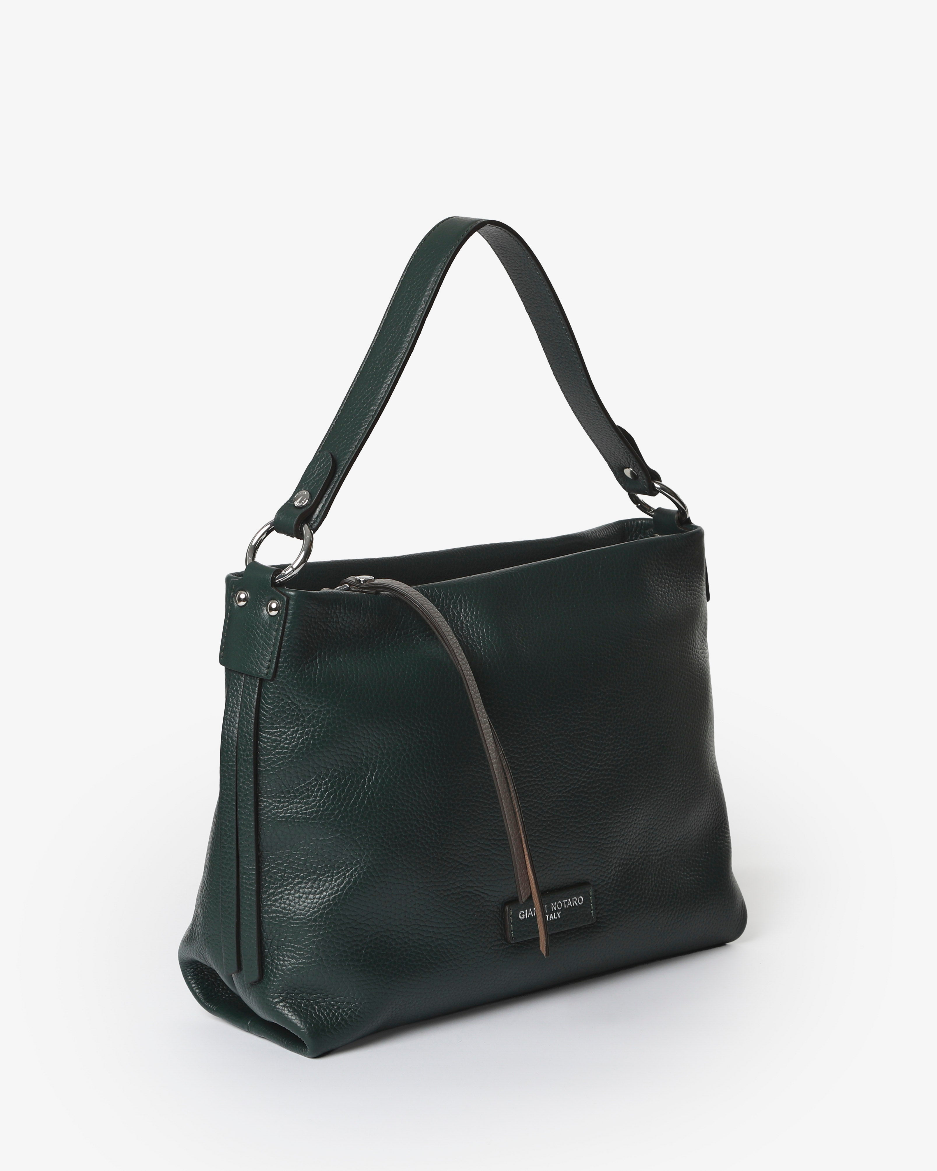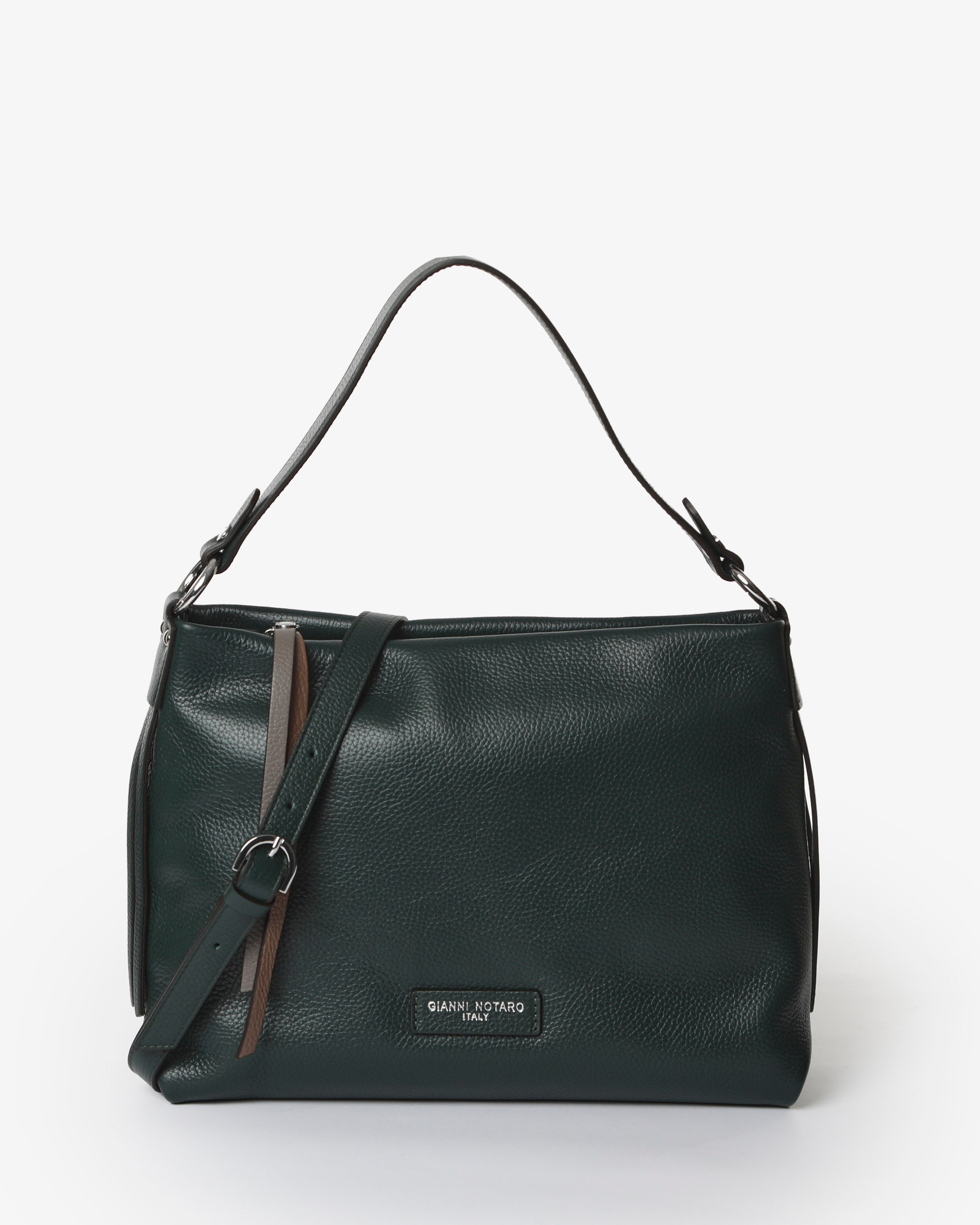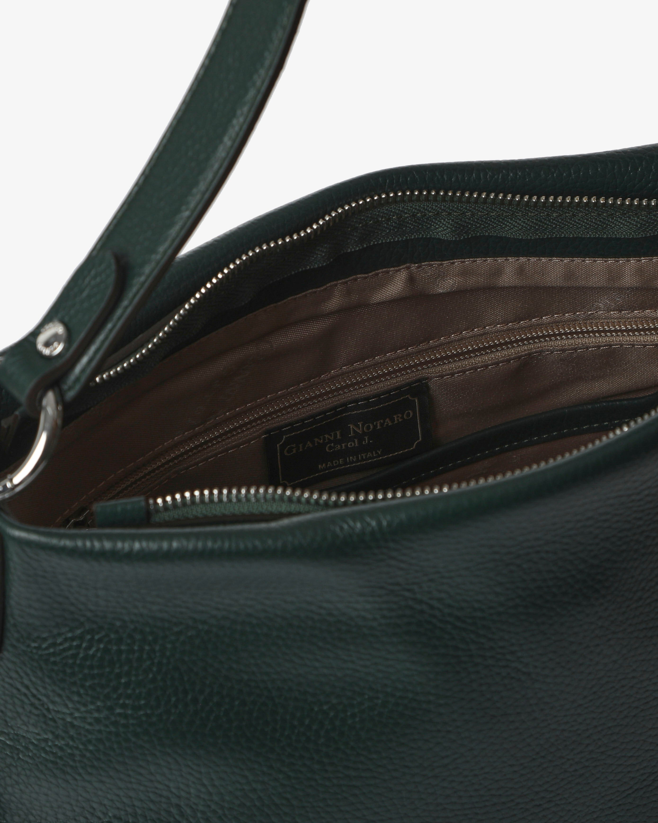 Soft design and essential silhouette for the "Hoara" bag by Gianni Notaro. Made of soft hammered leather (dollar), this shoulder bag combines elegance and functionality thanks to its spacious yet lightweight shape. The bicolor zipper pull detail on the front adds a contemporary and distinctive touch.