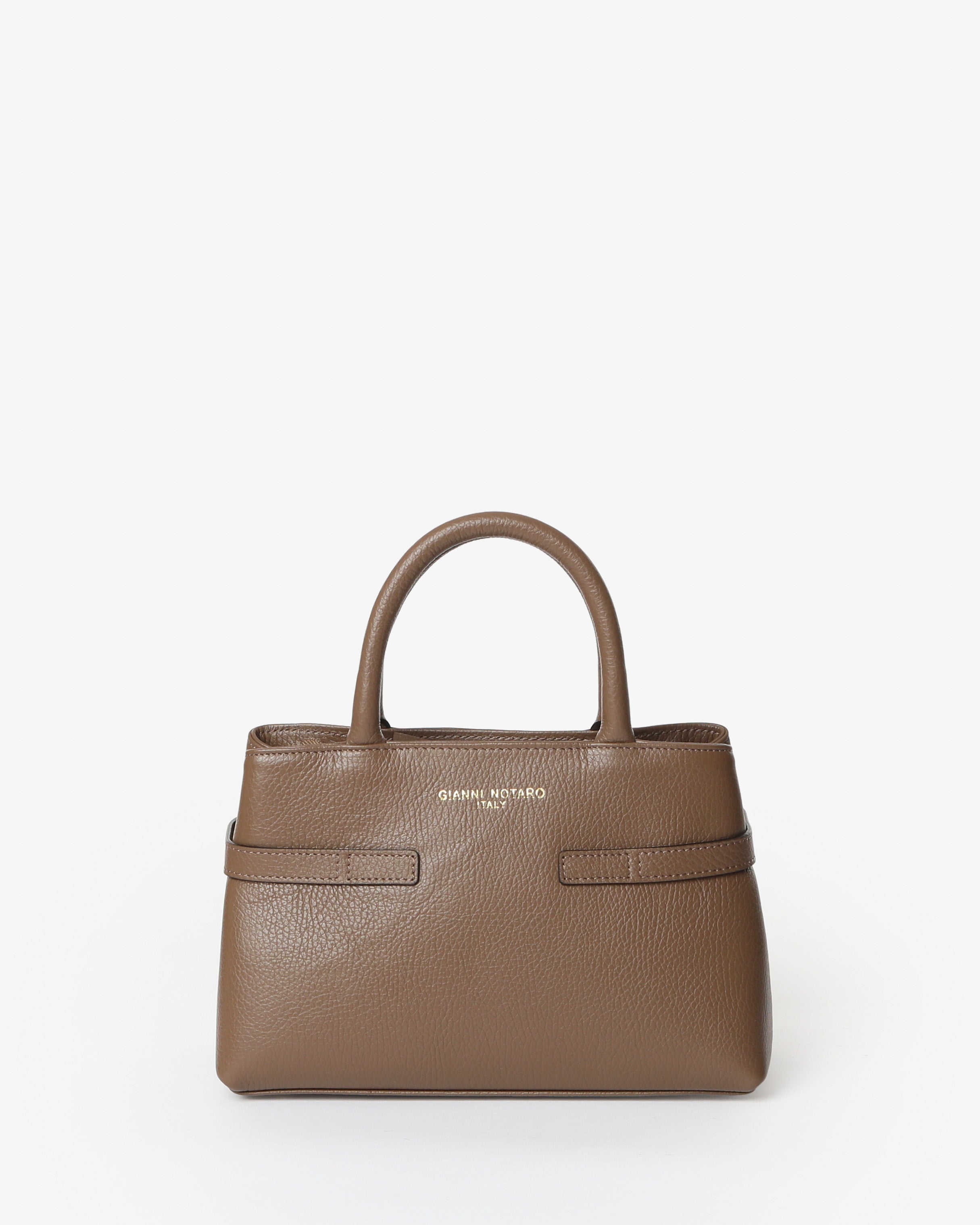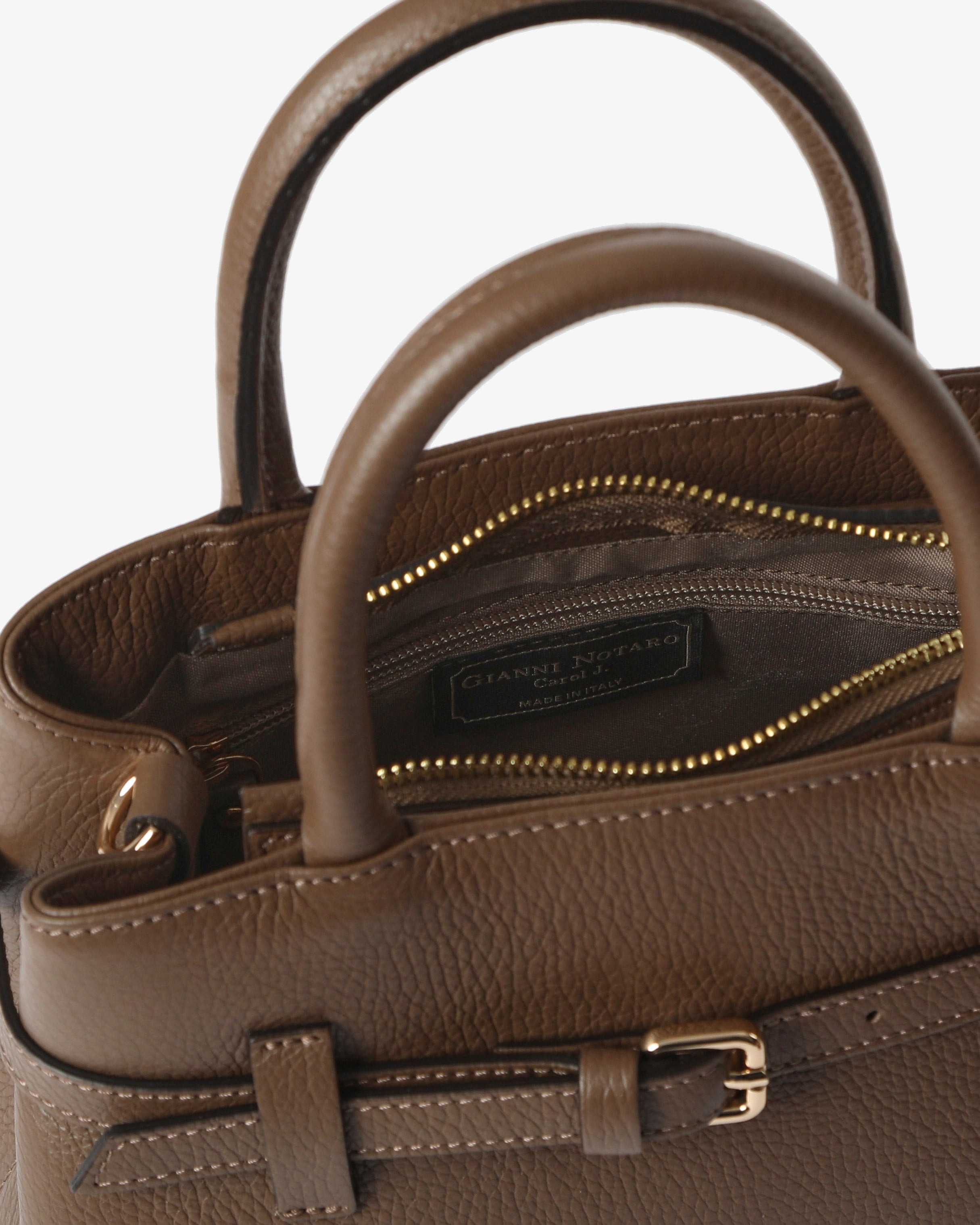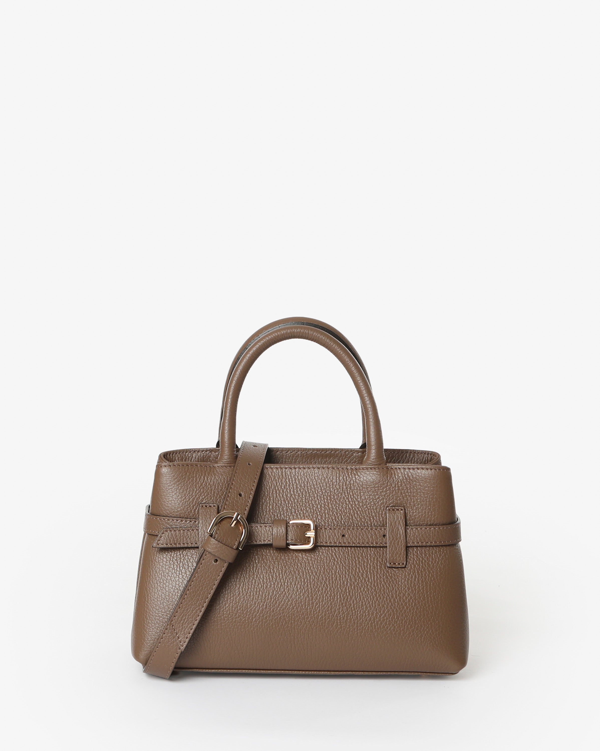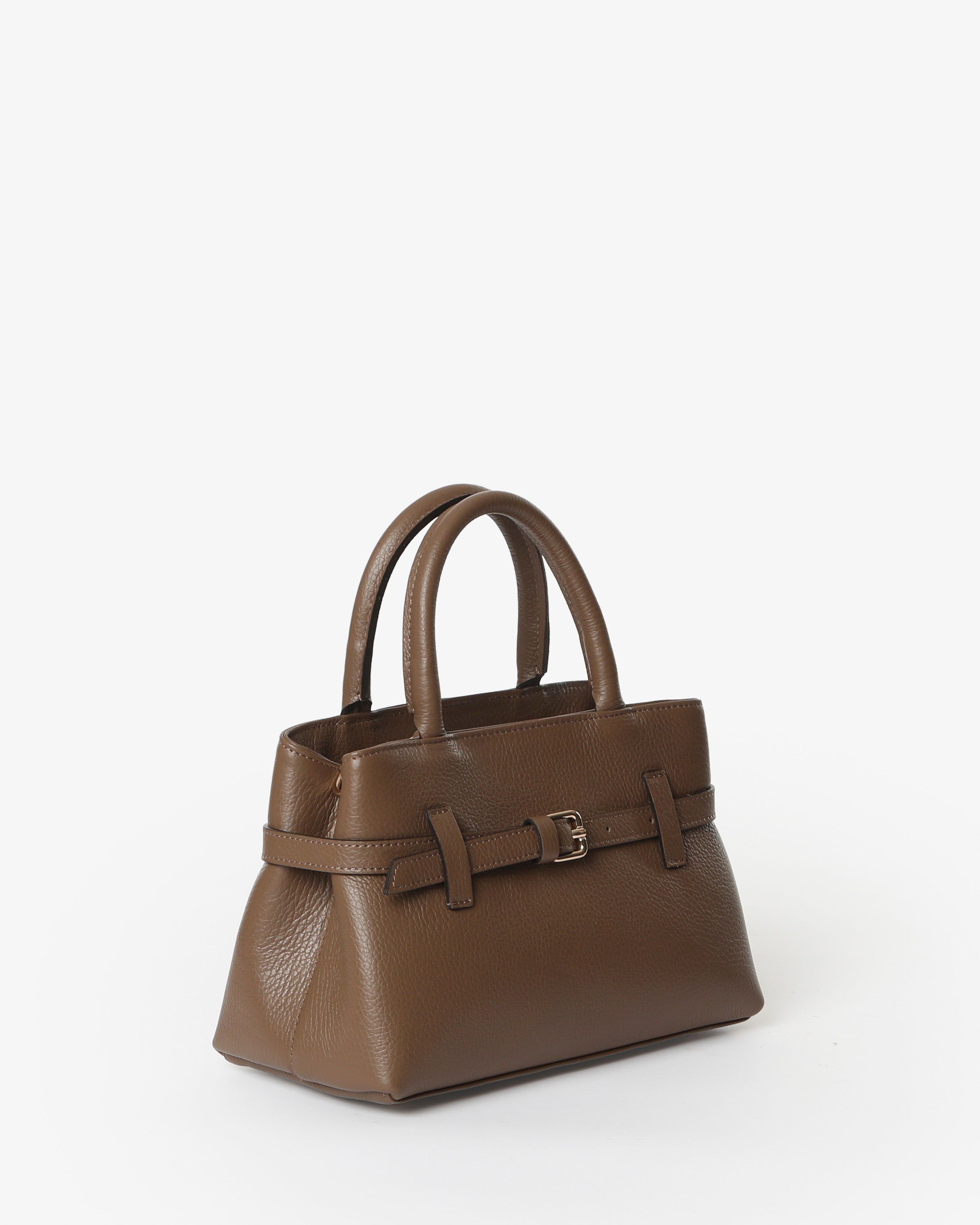 A small jewel of everyday elegance. The "Ivonne" handbag is made of hammered dollar leather, featuring a natural grain and a soft yet durable texture. The structured design with a decorative strap and rigid base makes it a refined and versatile accessory, perfect to complement any look.
