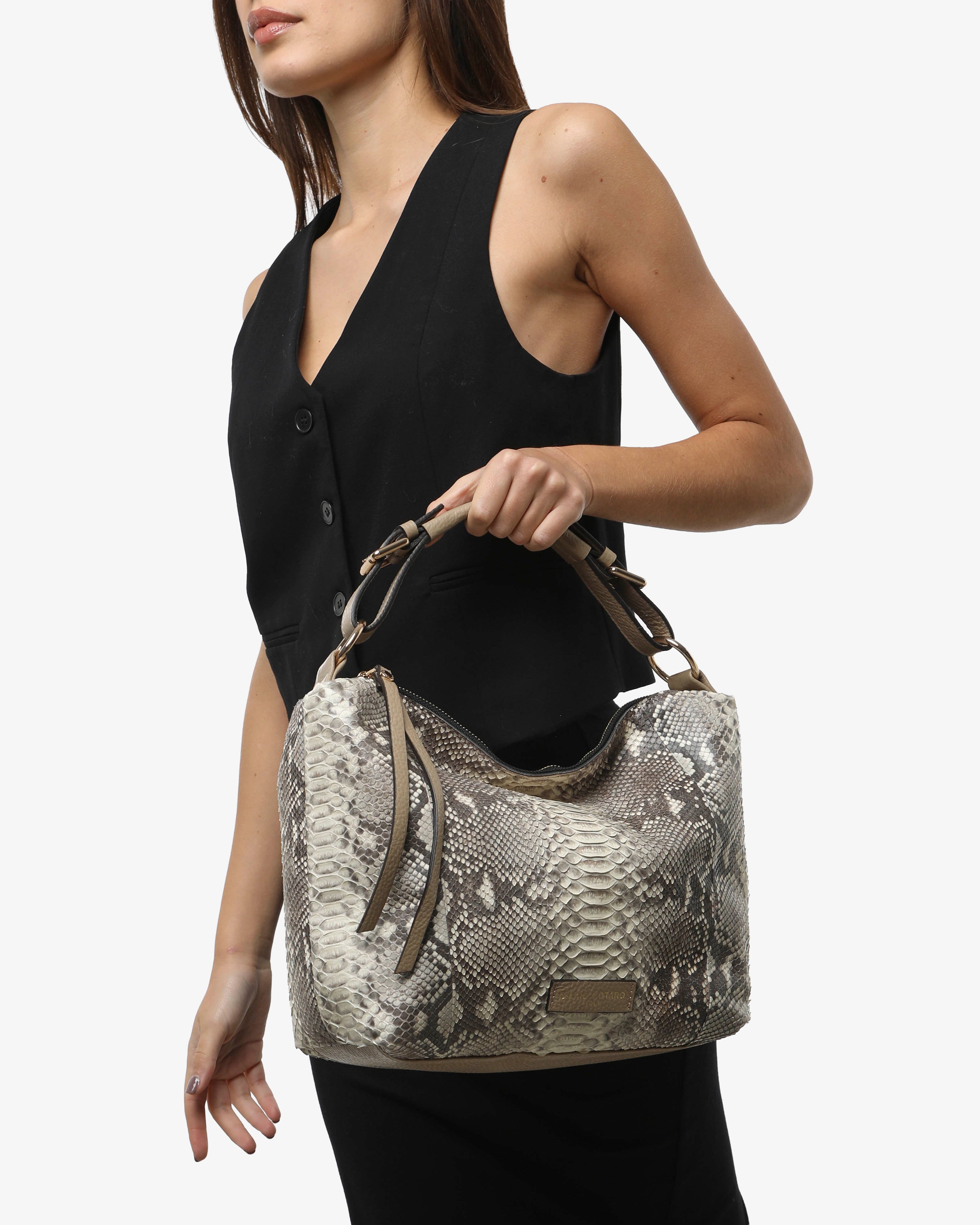 Explore elegance and luxury with the exquisite Keira "Real Python" bag made of genuine python. This bag is a work of art that conveys exclusivity and refined style. A high-fashion accessory for those seeking the utmost in quality and elegance.