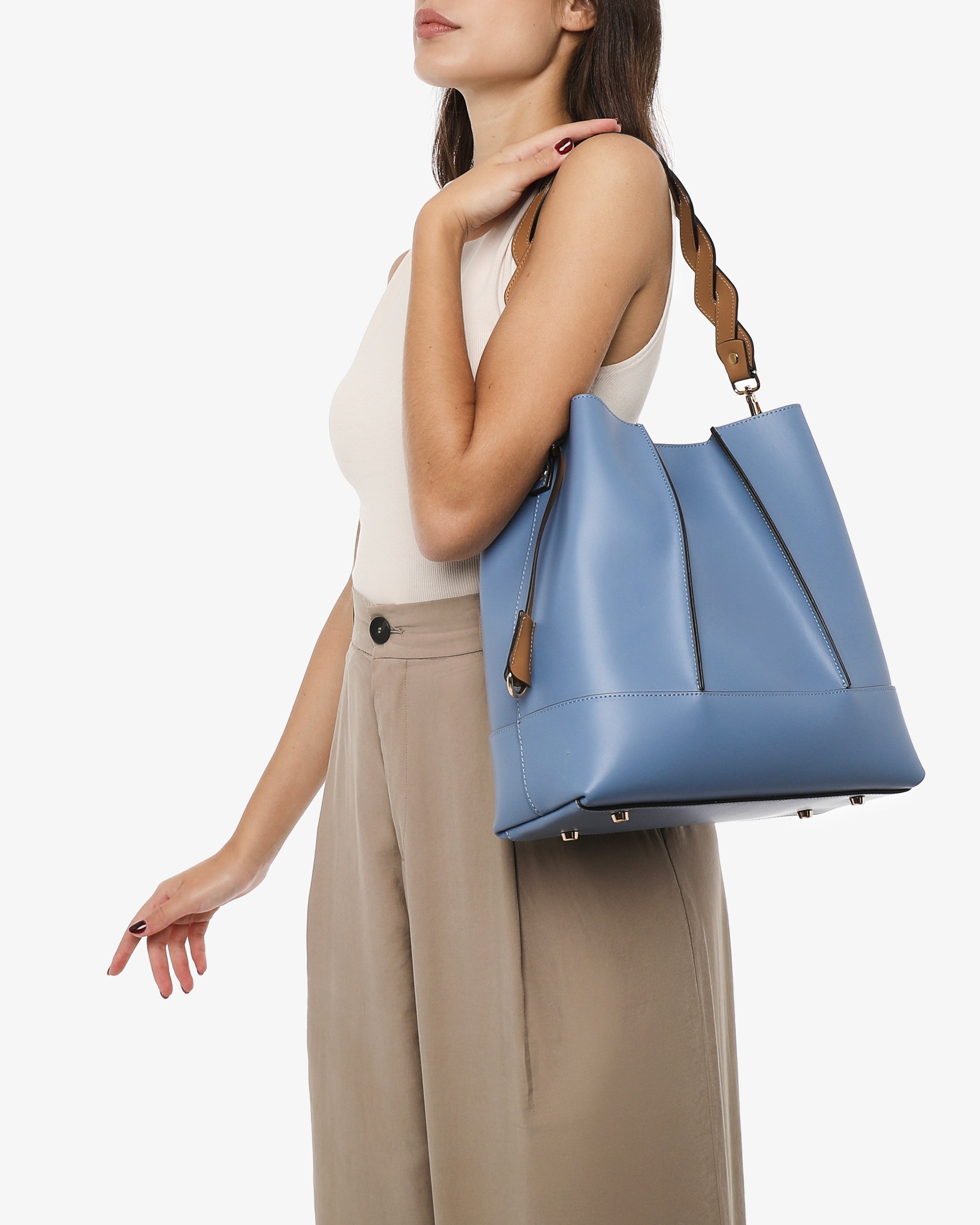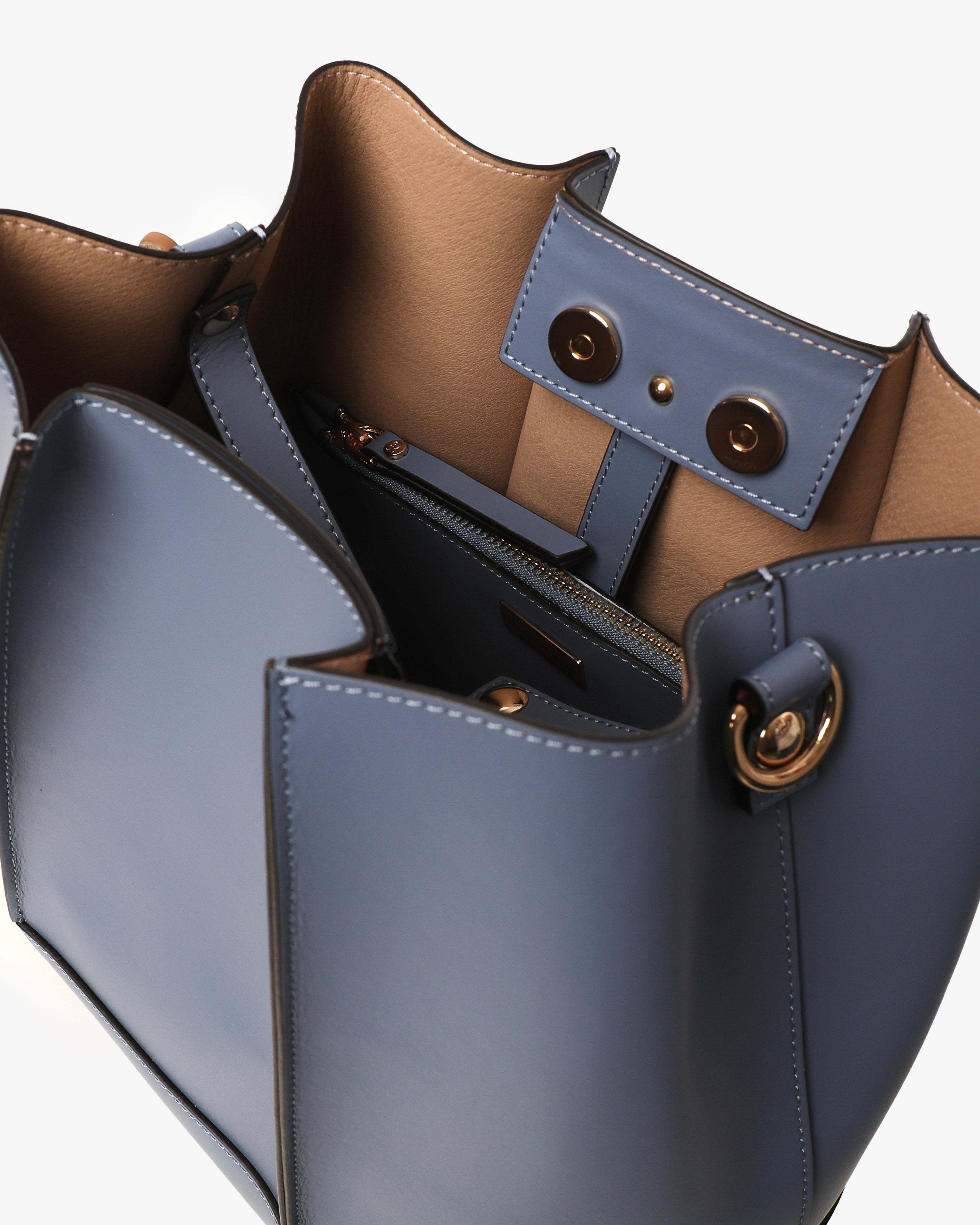 "Stefania" by Gianni Notaro made of smooth leather, a bag capable of holding all the essentials, with a unique design that makes it feminine and contemporary