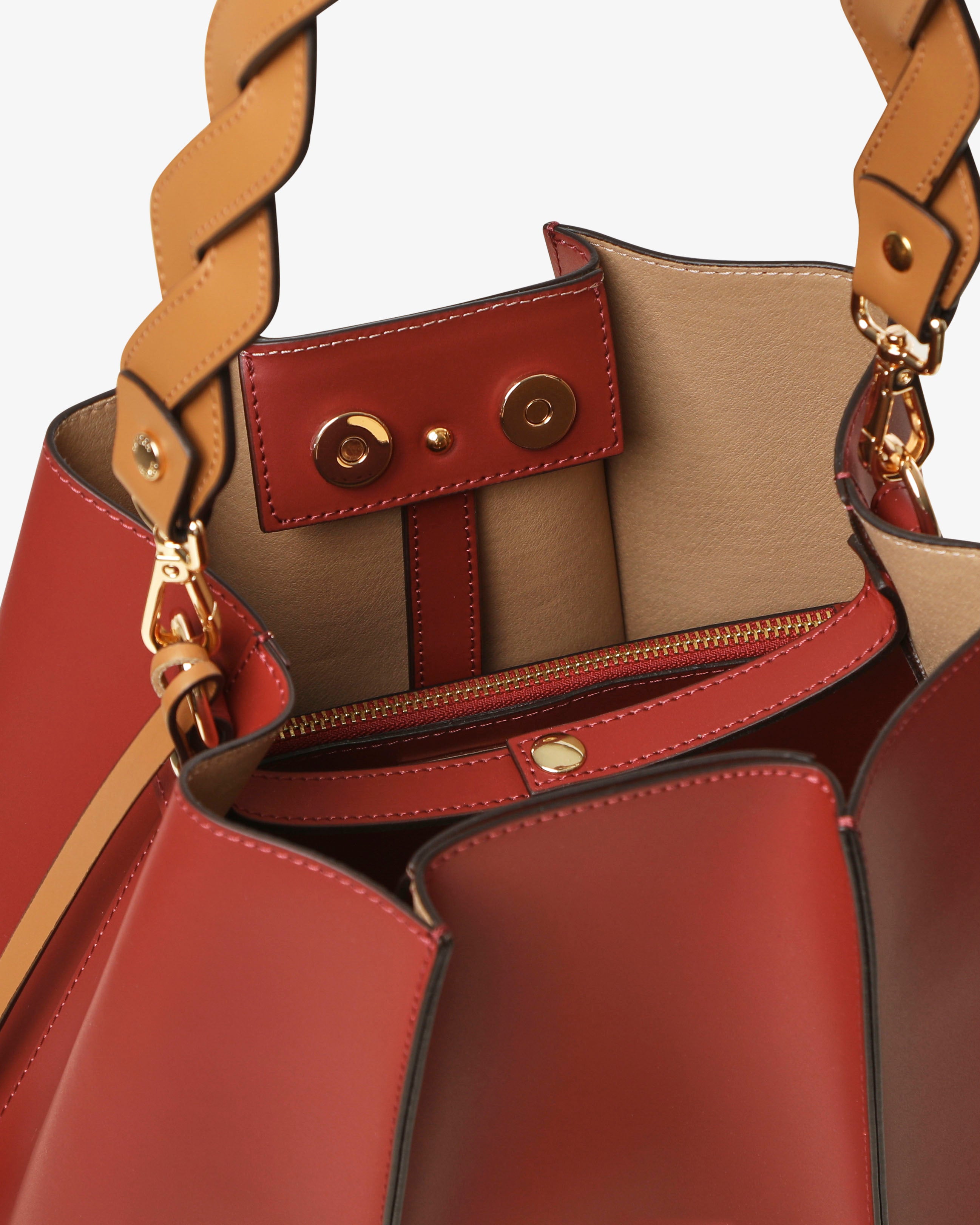 "Stefania" by Gianni Notaro made of smooth leather, a bag capable of holding all the essentials, with a unique design that makes it feminine and contemporary