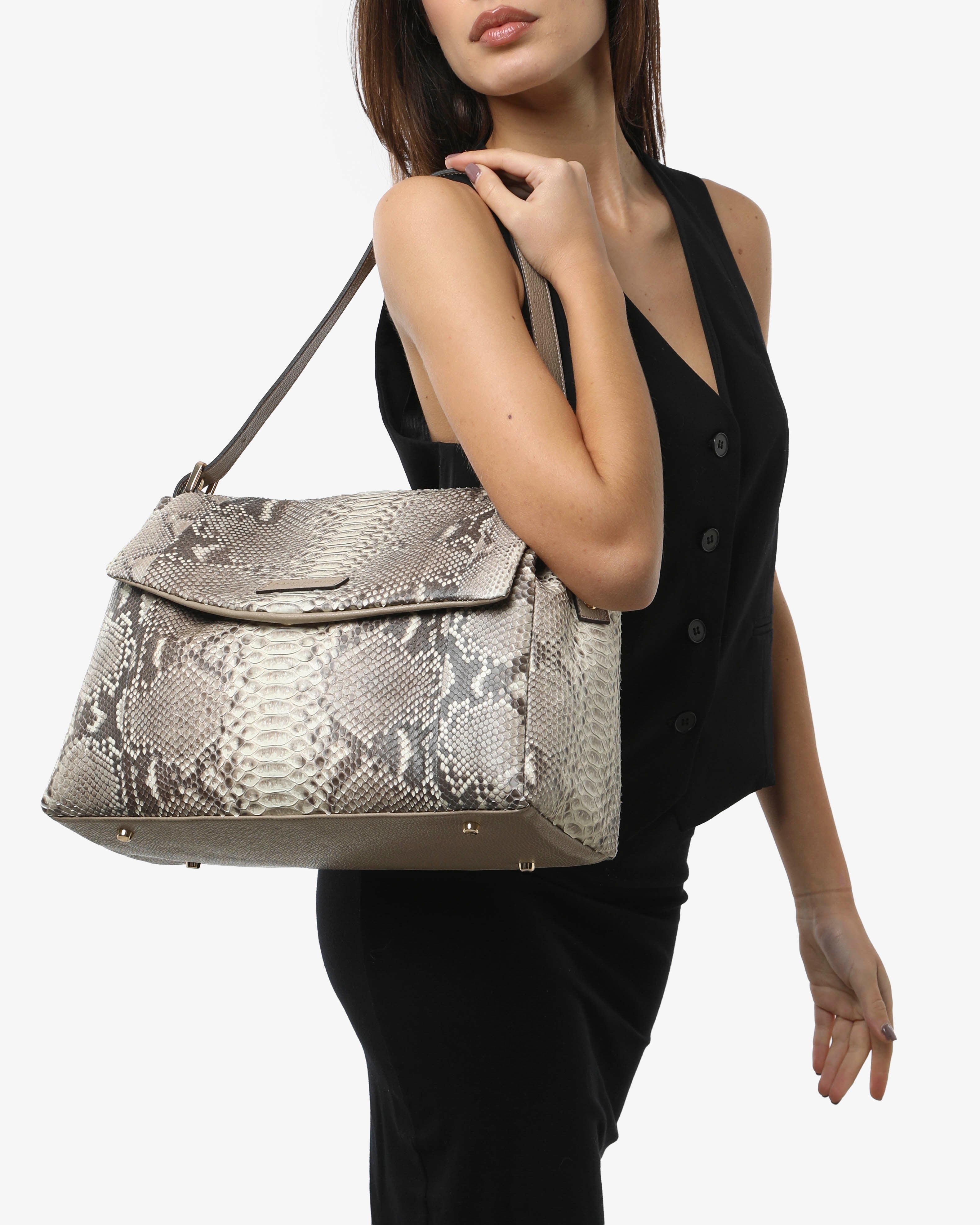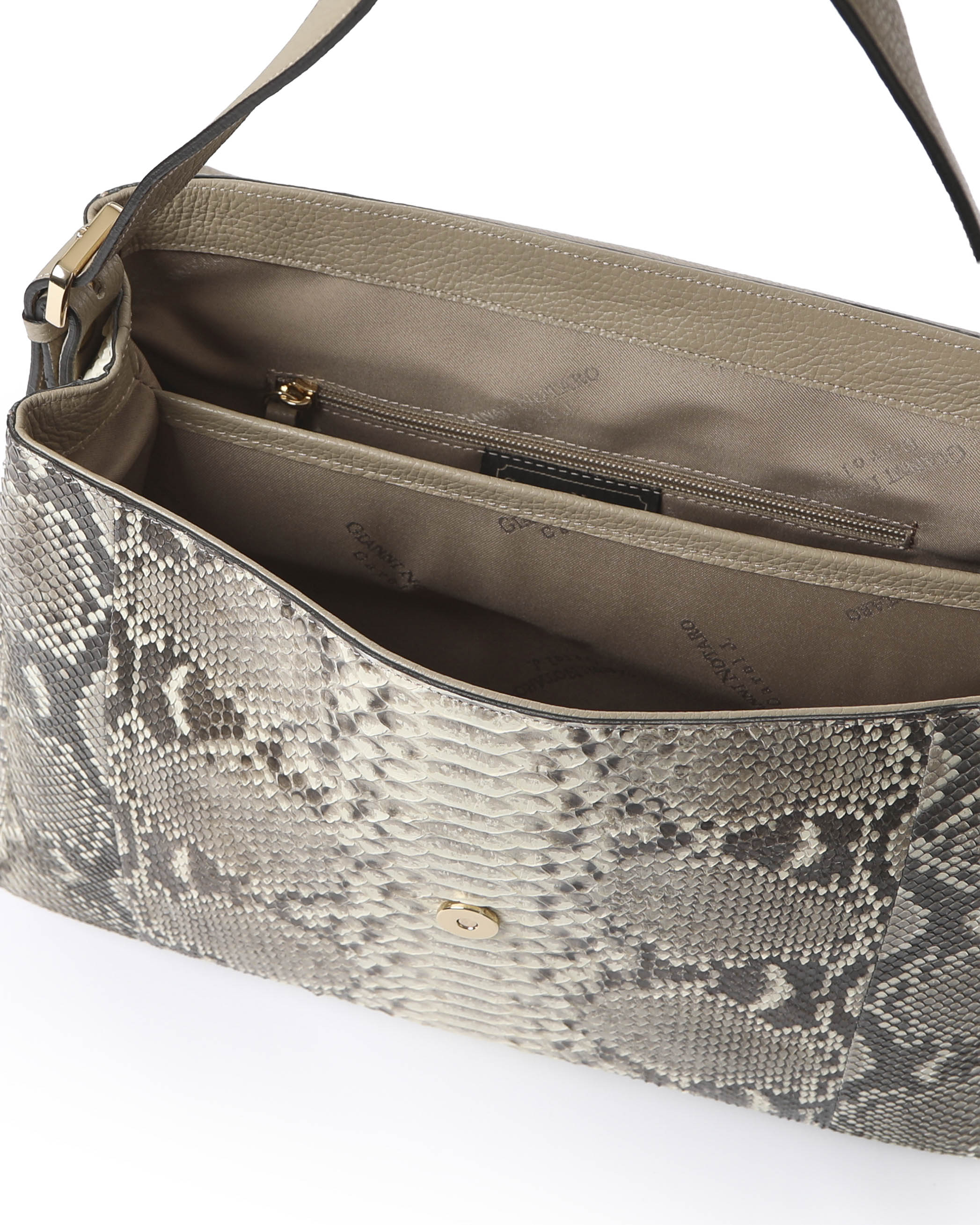 Realizzata in vero pitone naturale e rifinita secondo la più autentica tradizione dei maestri artigiani Italiani, custodi di una lavorazione preziosa e tramandata nel tempo.