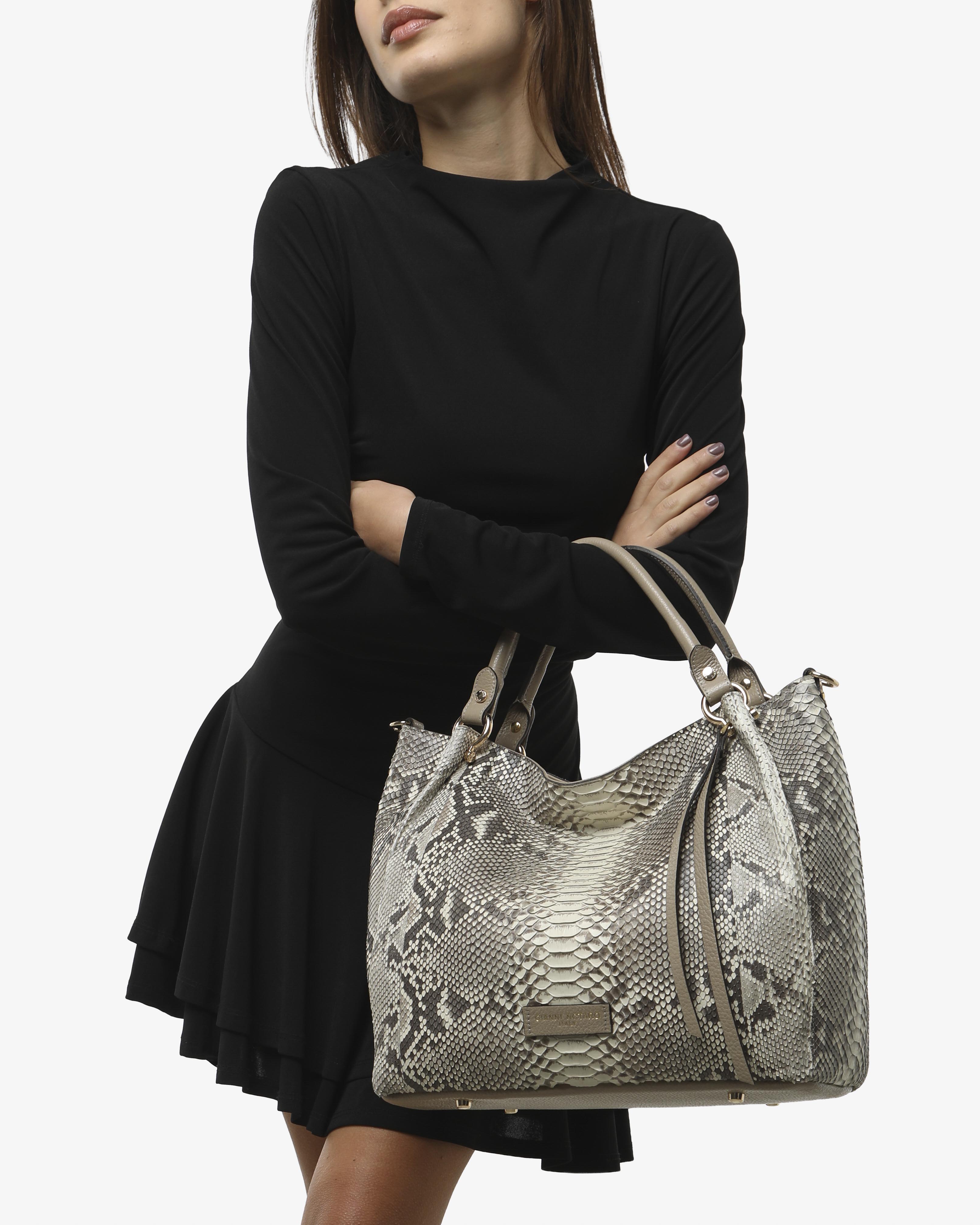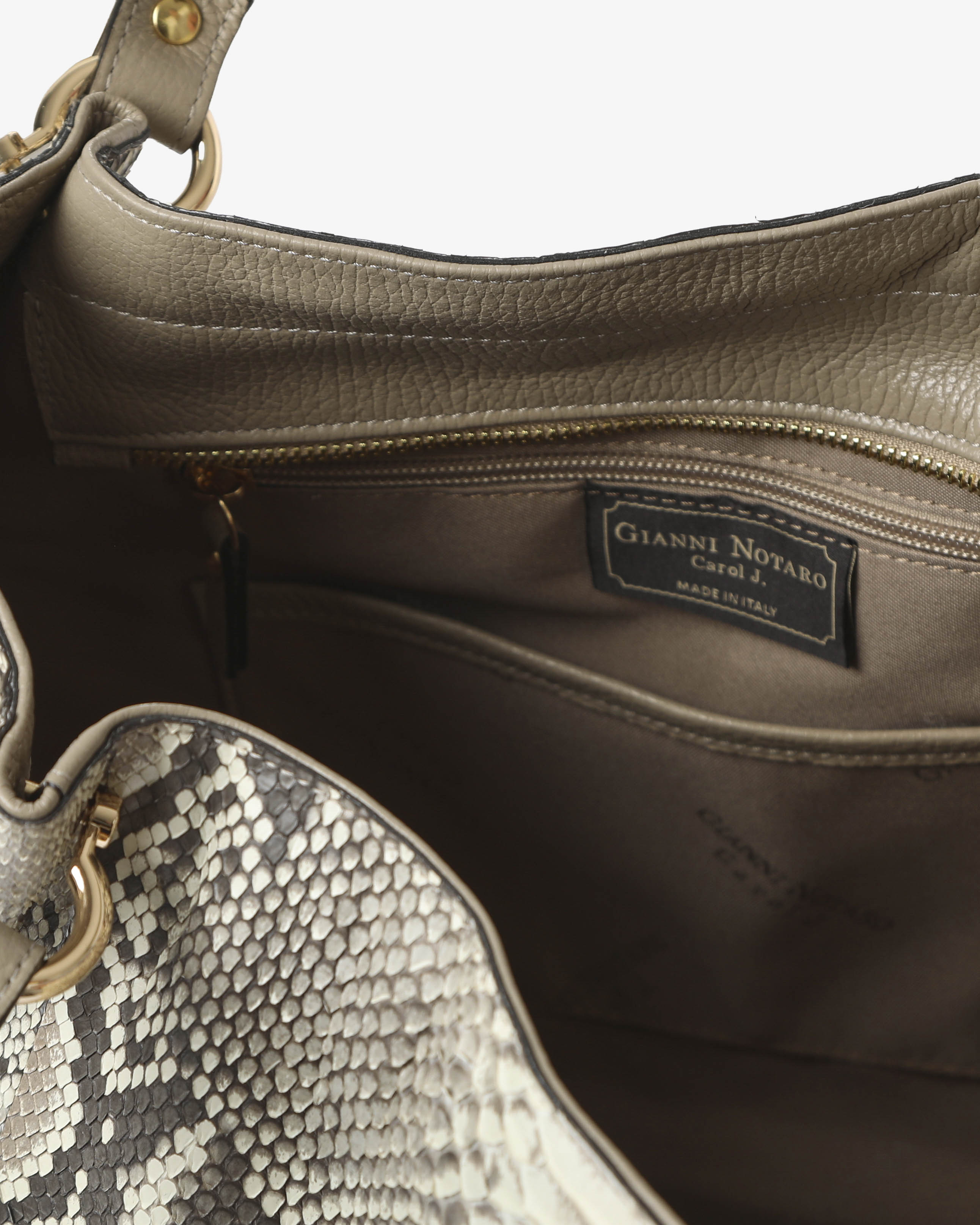 Realizzata in vero pitone naturale e rifinita secondo la più autentica tradizione dei maestri artigiani Italiani, custodi di una lavorazione preziosa e tramandata nel tempo.