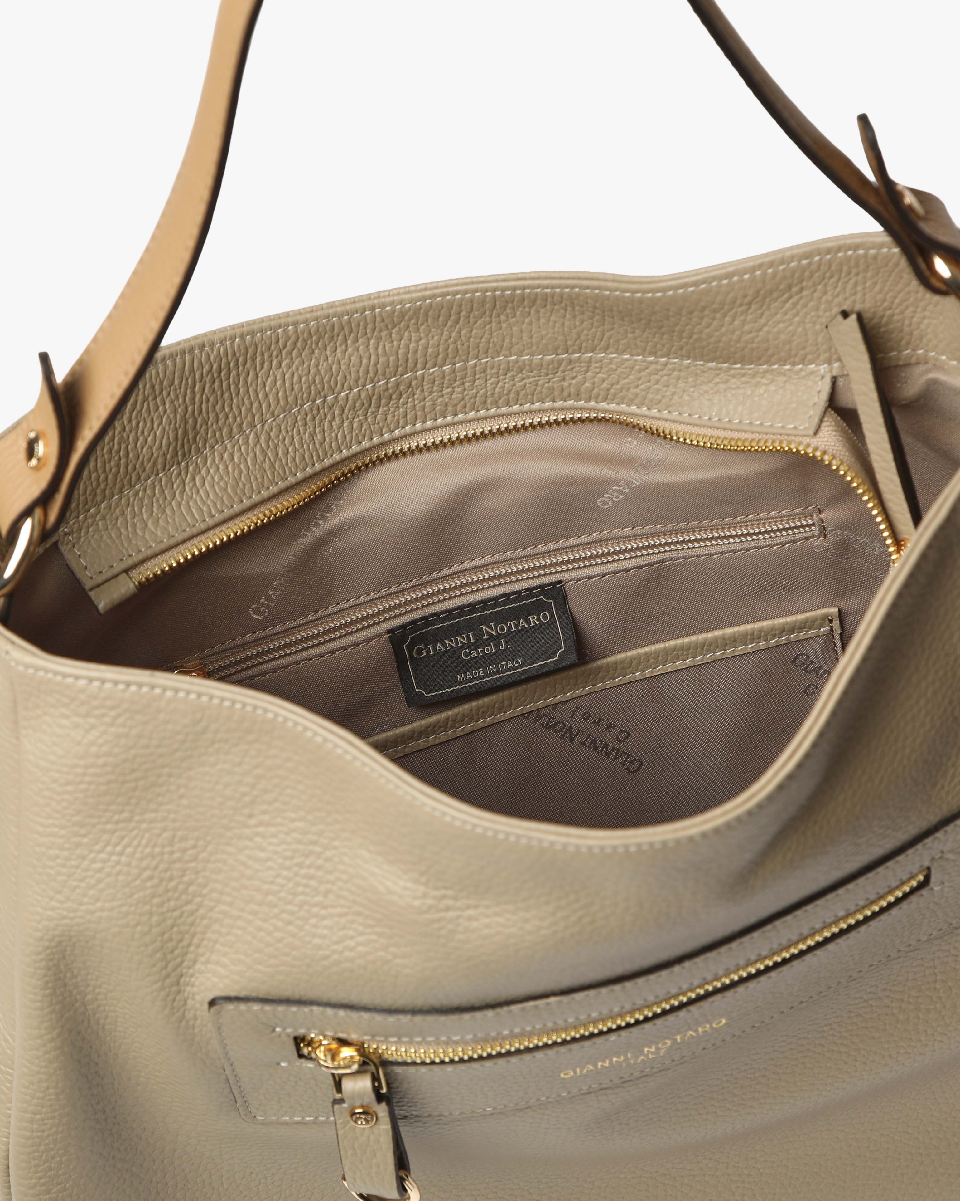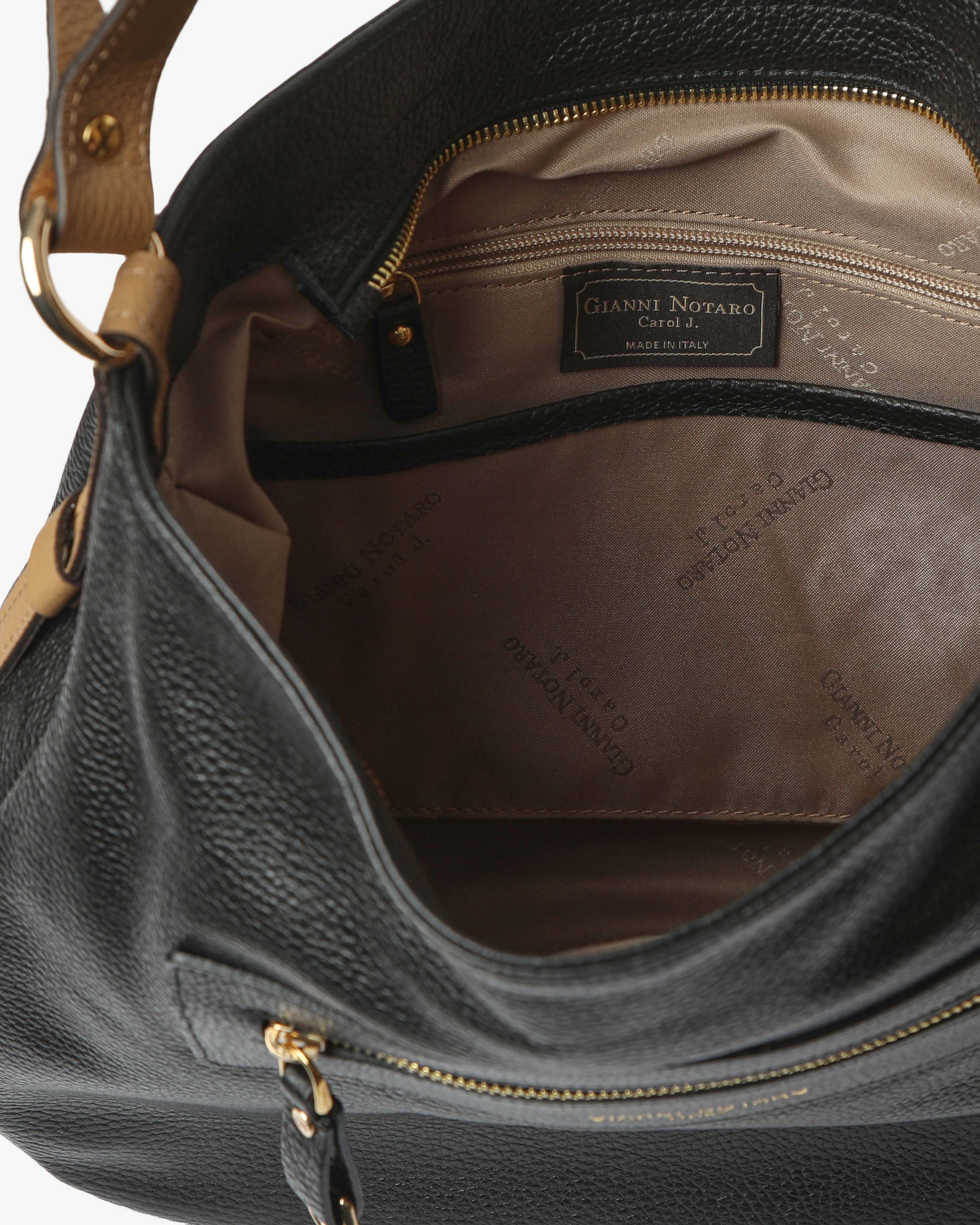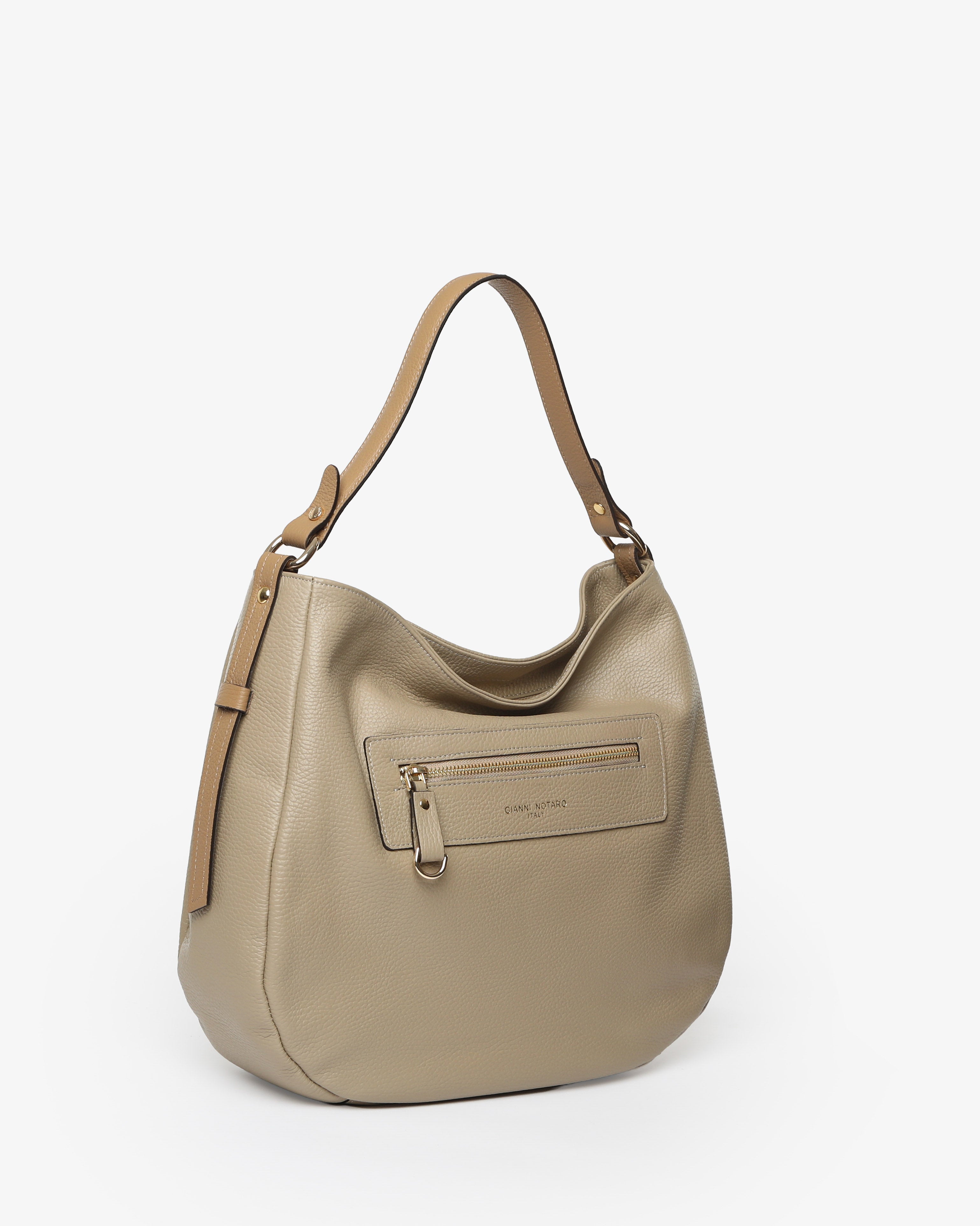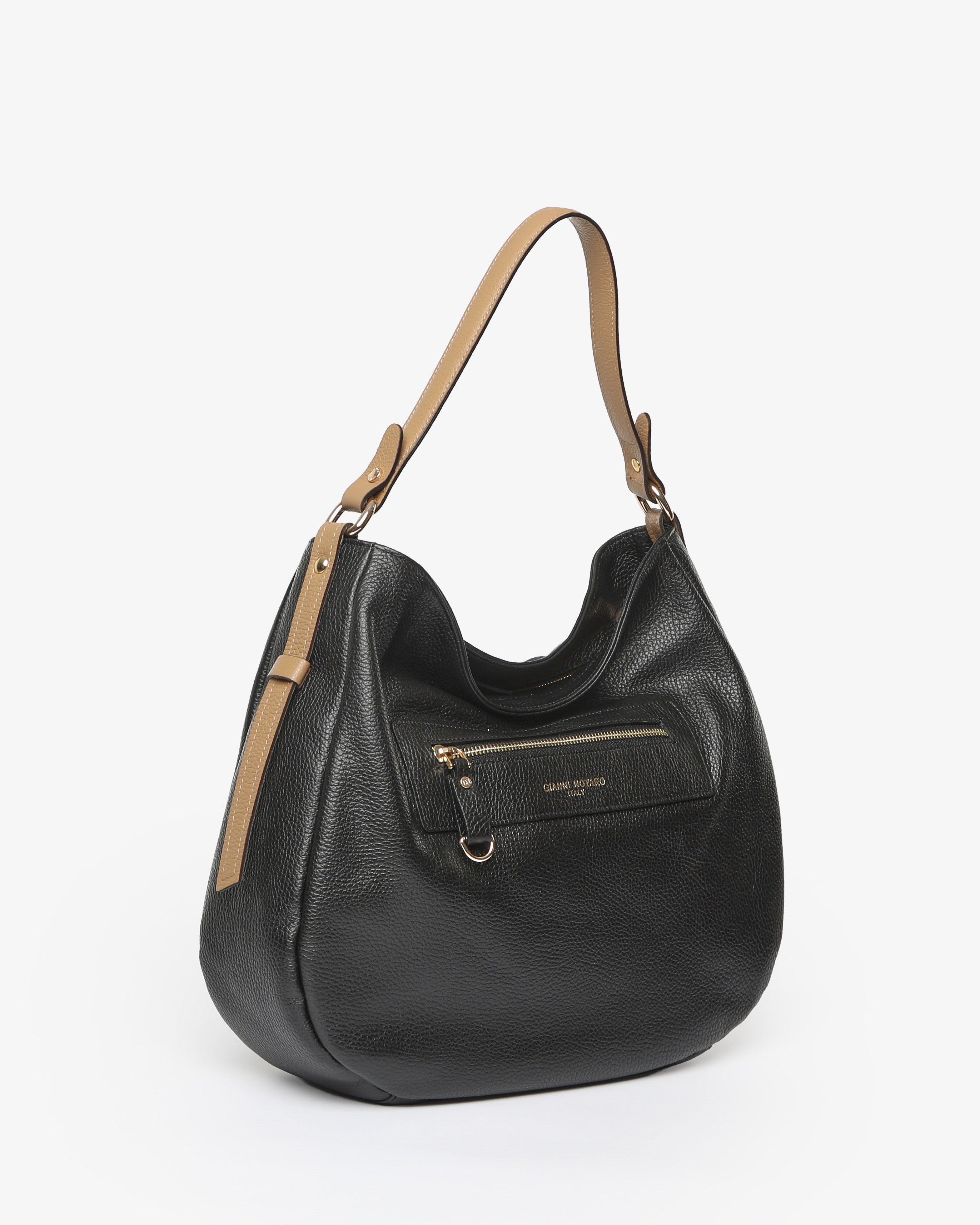 Ella è la borsa Hobo in pelle martellata dollaro, dal design morbido ed elegante. Dotata di manico a spalla, tracolla regolabile e tasca frontale con zip per unire stile e funzionalità.