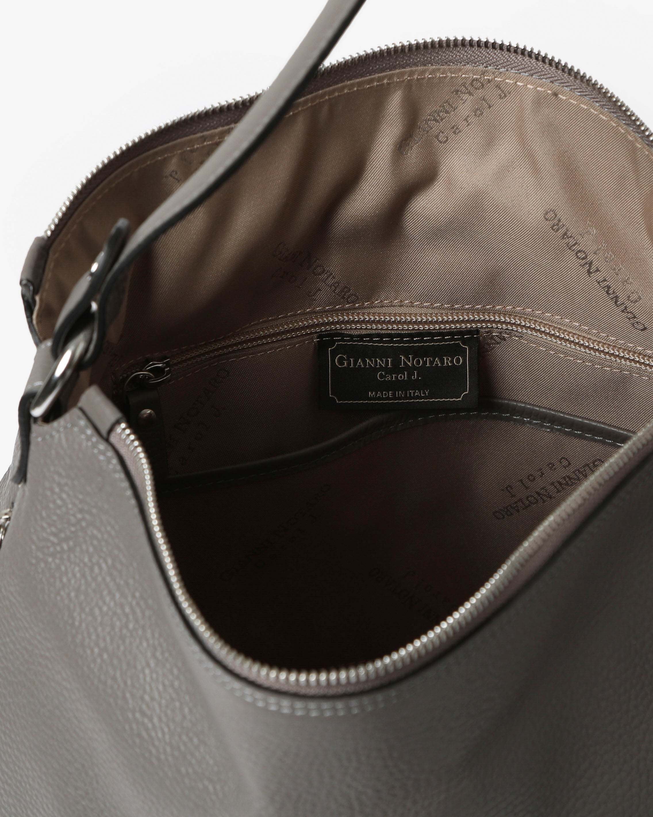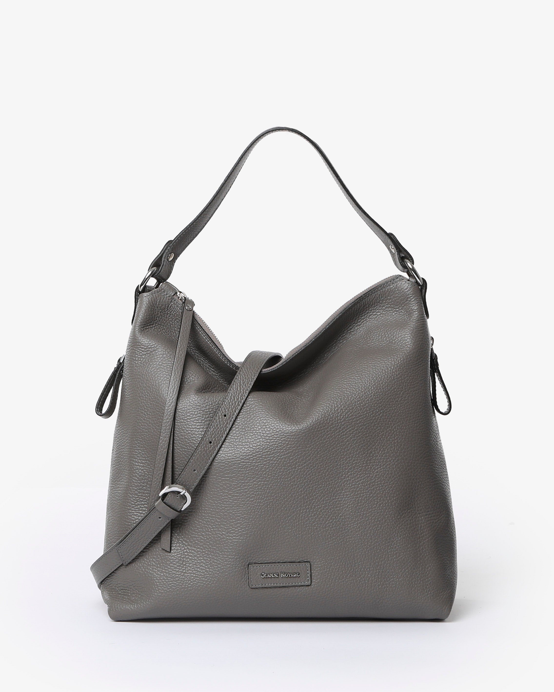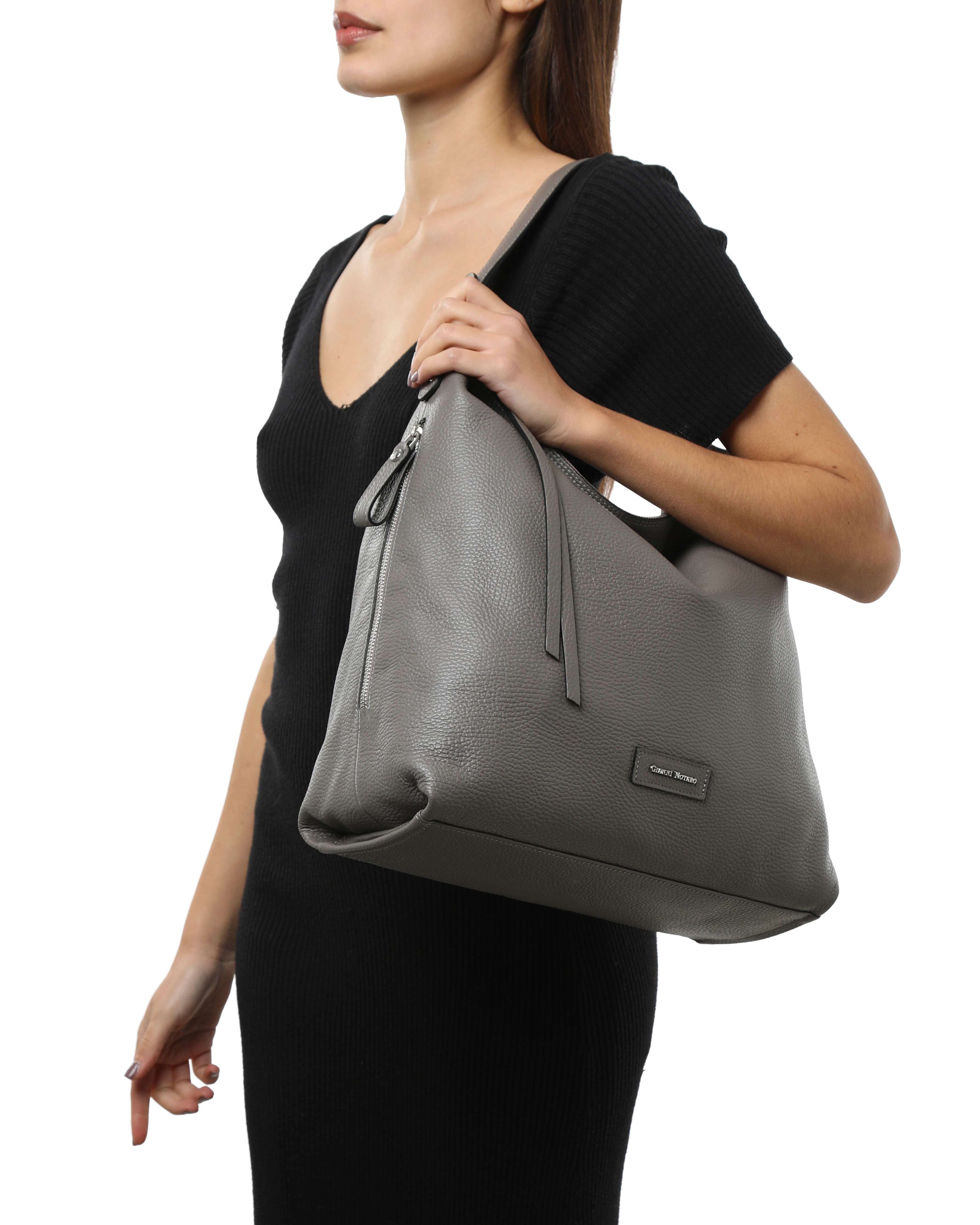 "FEBE" di Gianni Notaro realizzata in pelle morbida , ha una forma classica ma allo stesso tempo estremamente attuale, dotata di 2 tasche con zip sui fianchi.