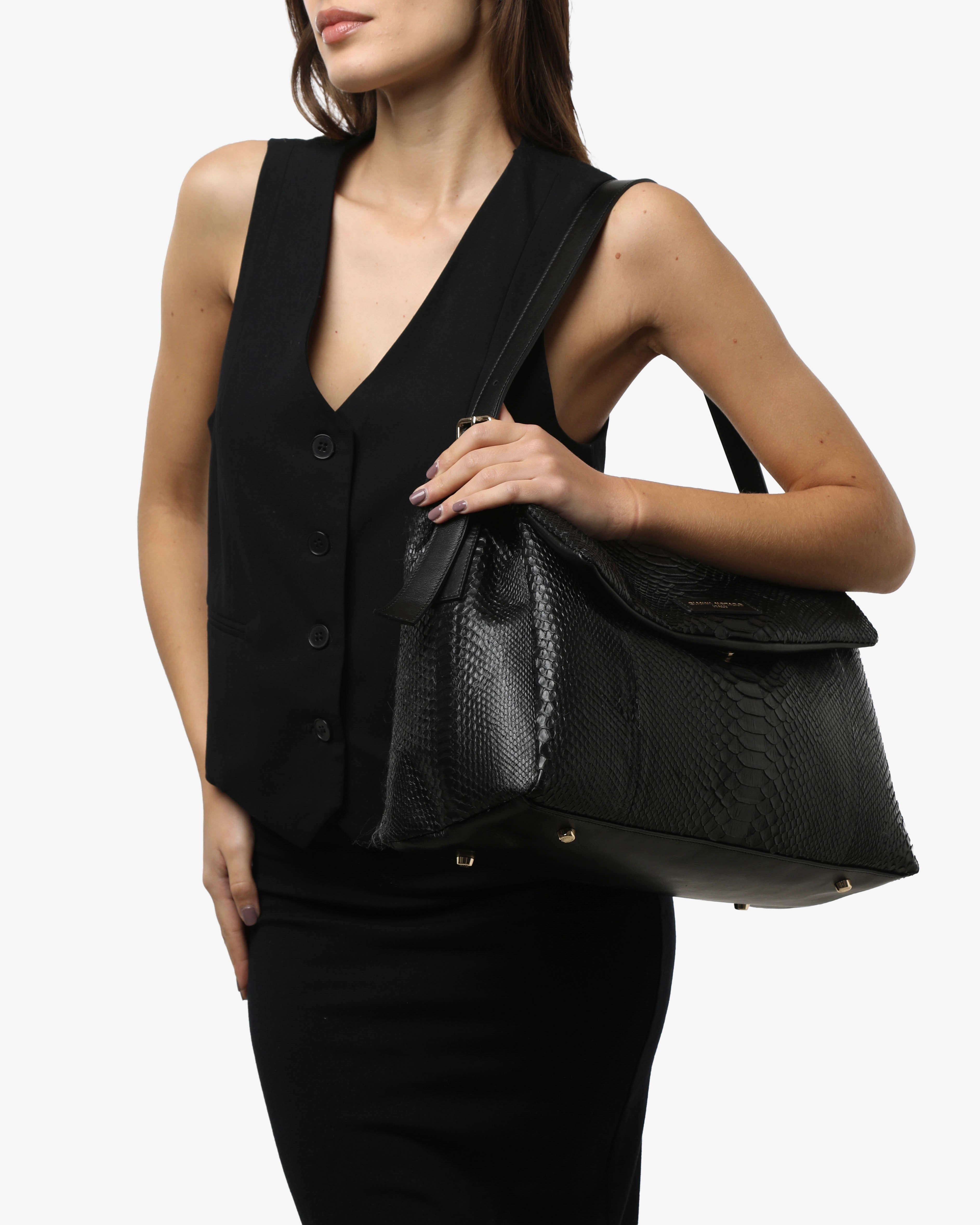 Realizzata in vero pitone naturale e rifinita secondo la più autentica tradizione dei maestri artigiani Italiani, custodi di una lavorazione preziosa e tramandata nel tempo.