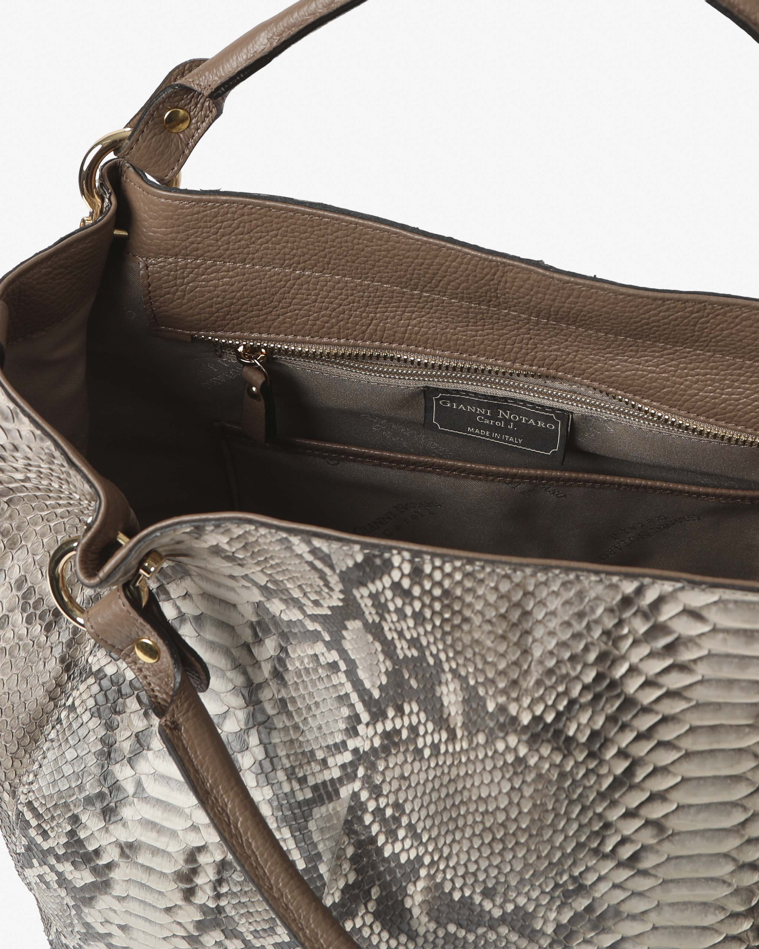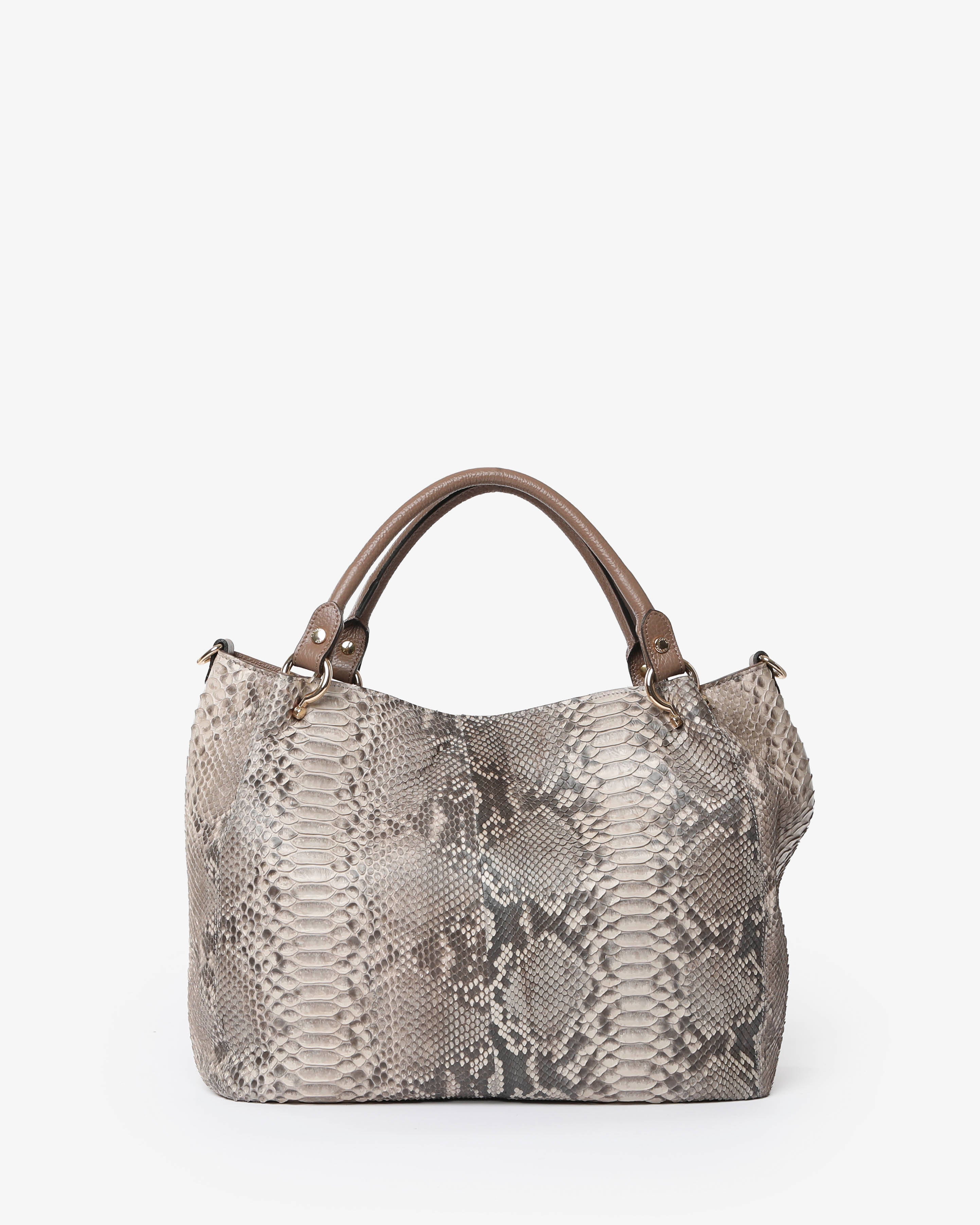 Realizzata in vero pitone naturale e rifinita secondo la più autentica tradizione dei maestri artigiani Italiani, custodi di una lavorazione preziosa e tramandata nel tempo.