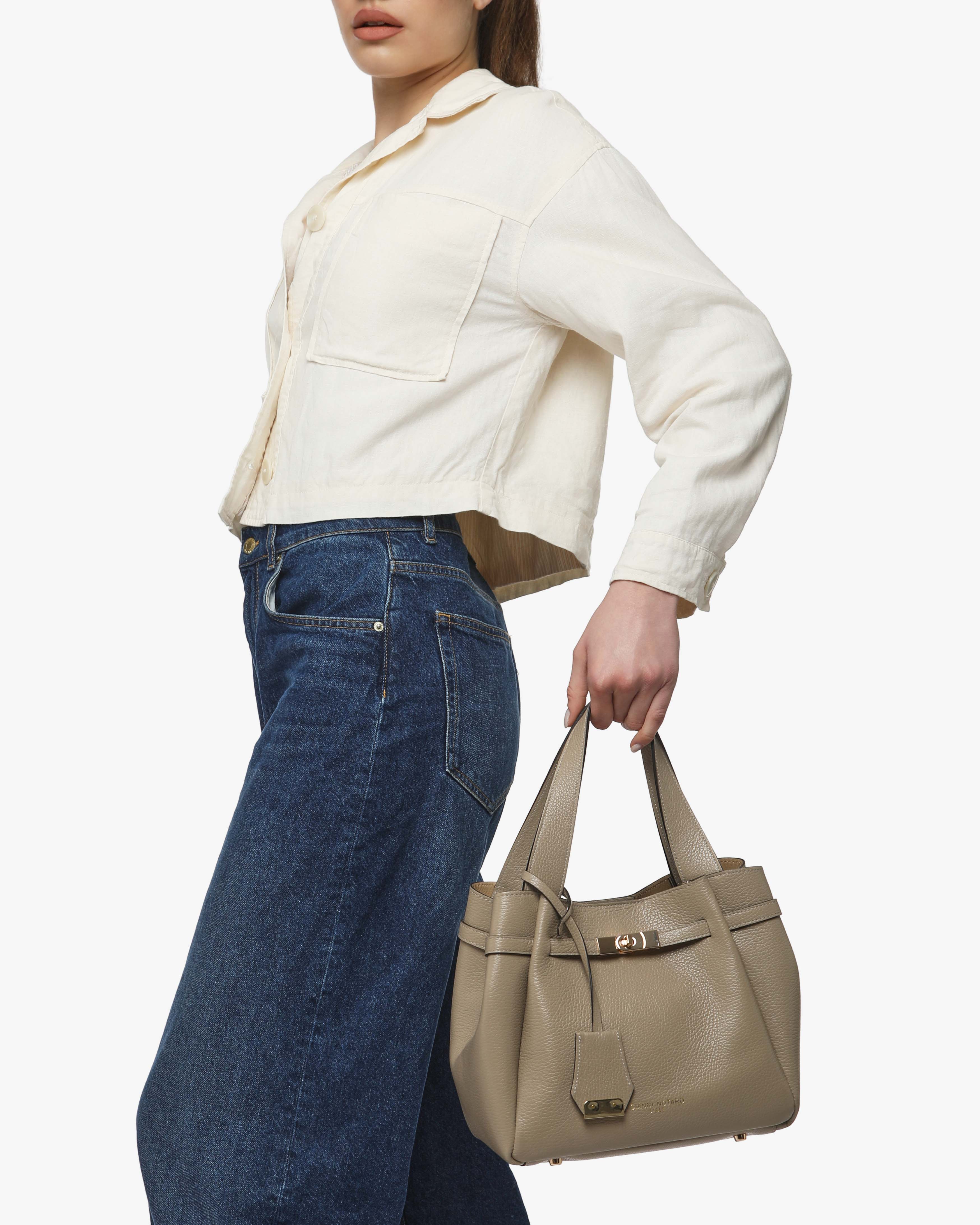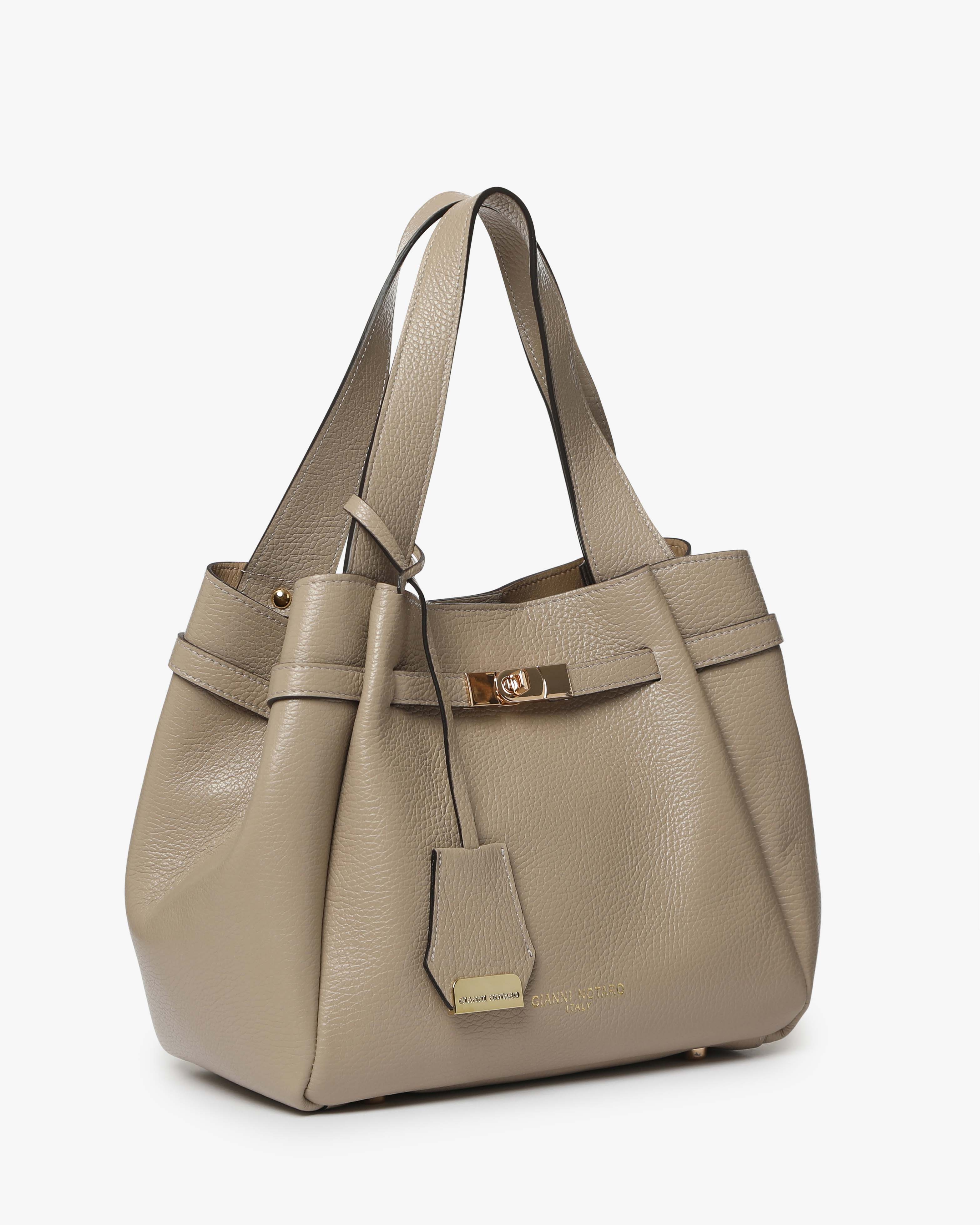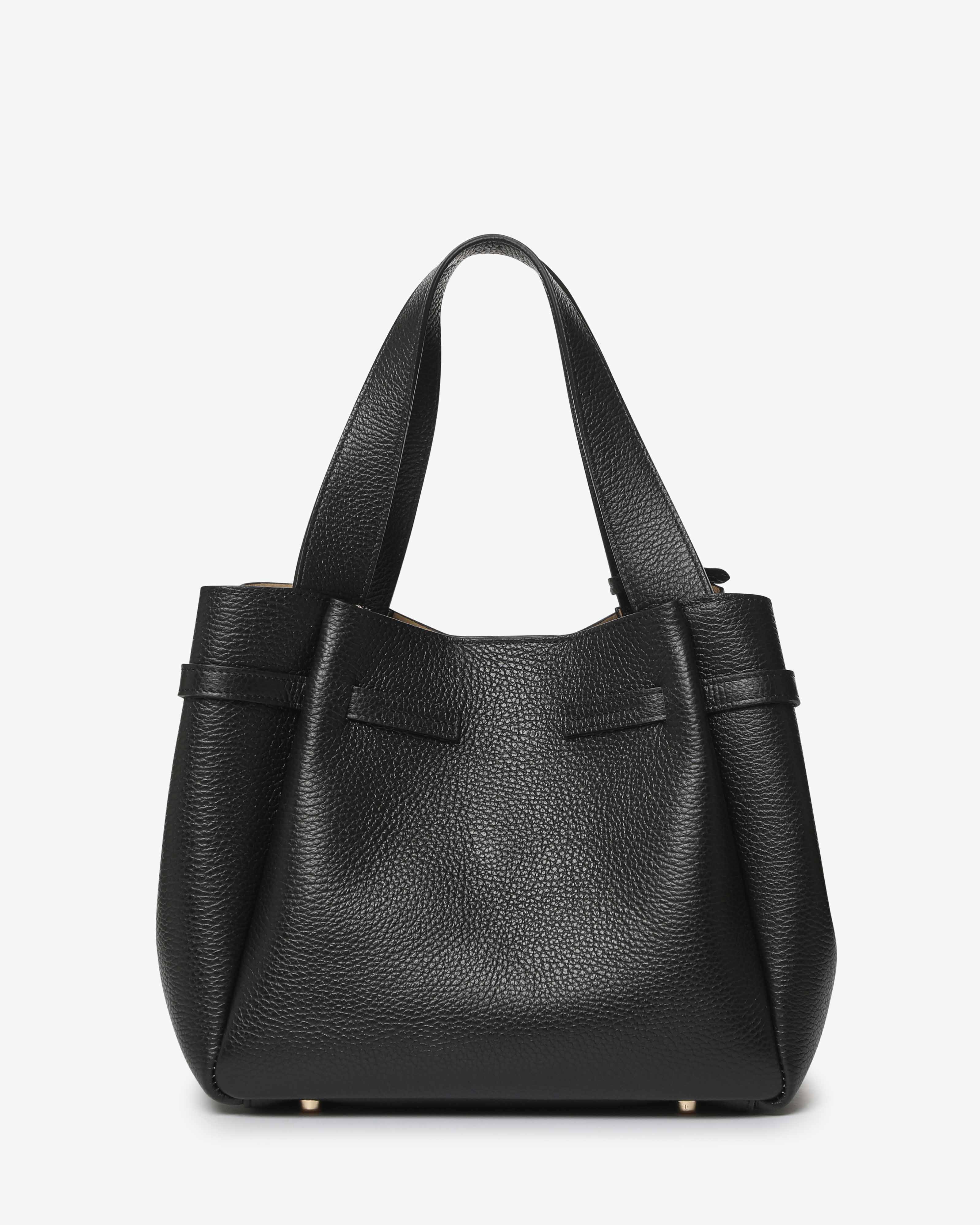 Peonia è la borsa a spalla in pelle martellata dal design elegante e strutturato, con dettaglio chiusura frontale. Dotata di doppio manico, tracolla regolabile e pochette interna removibile. Perfetta per un look raffinato e funzionale.