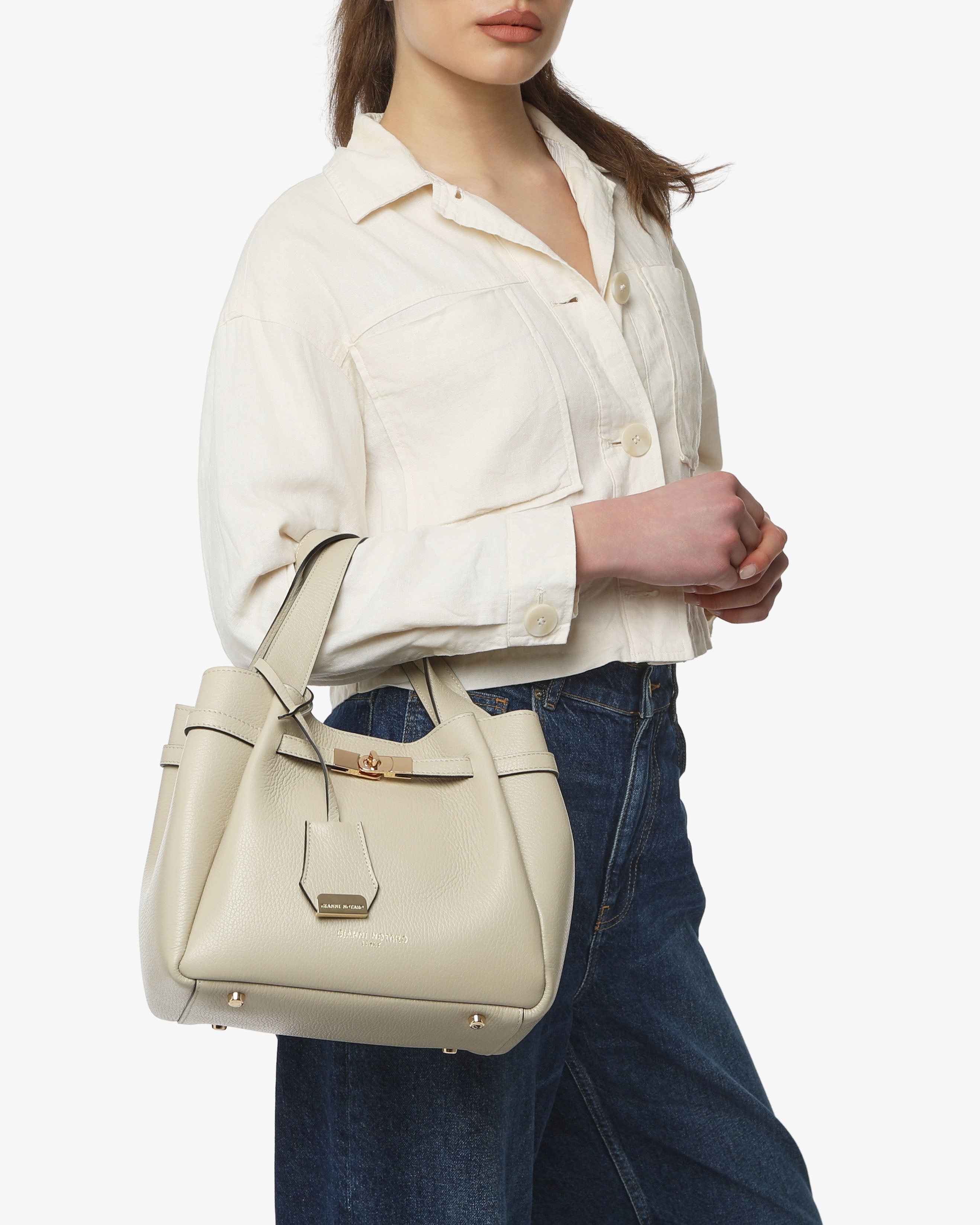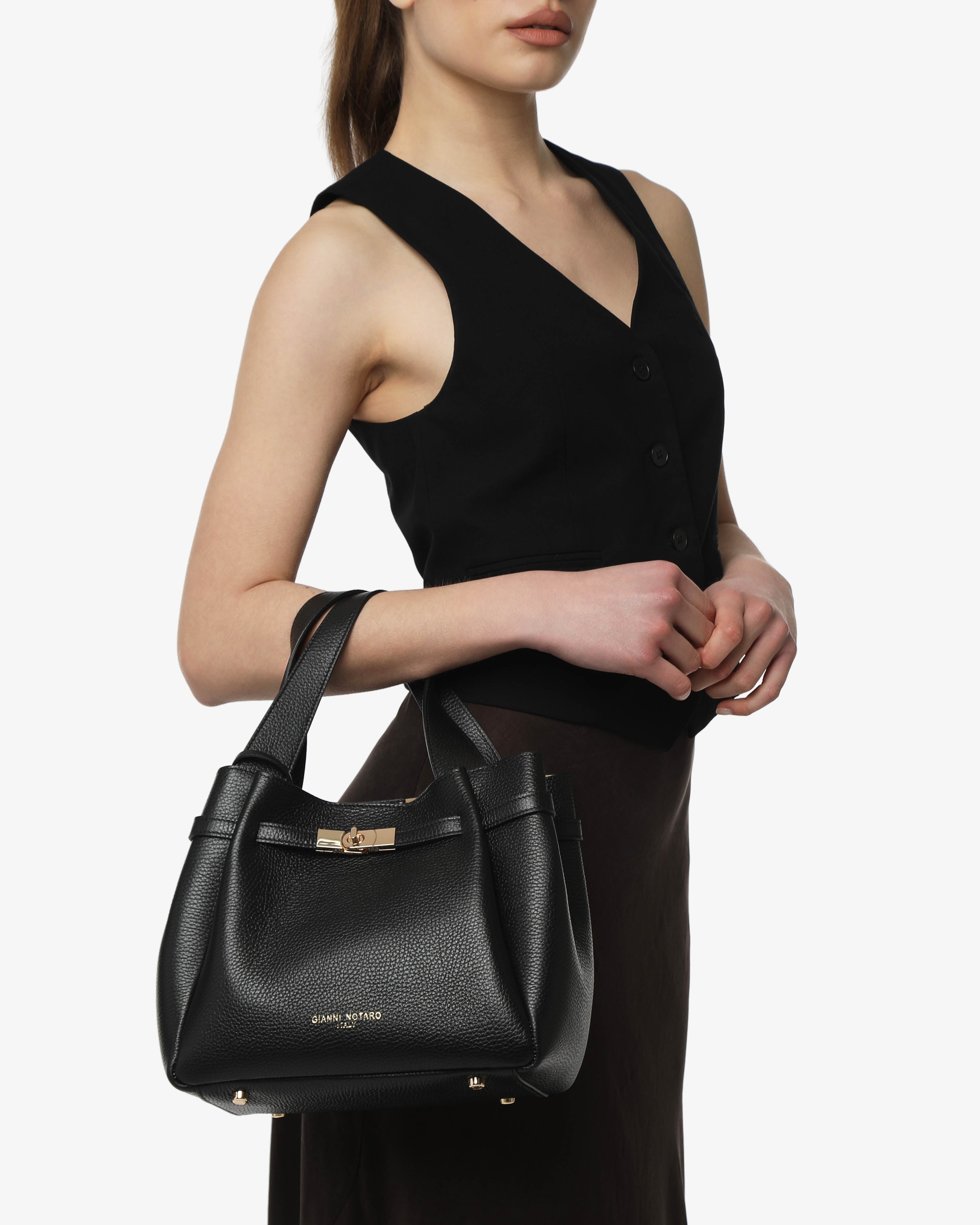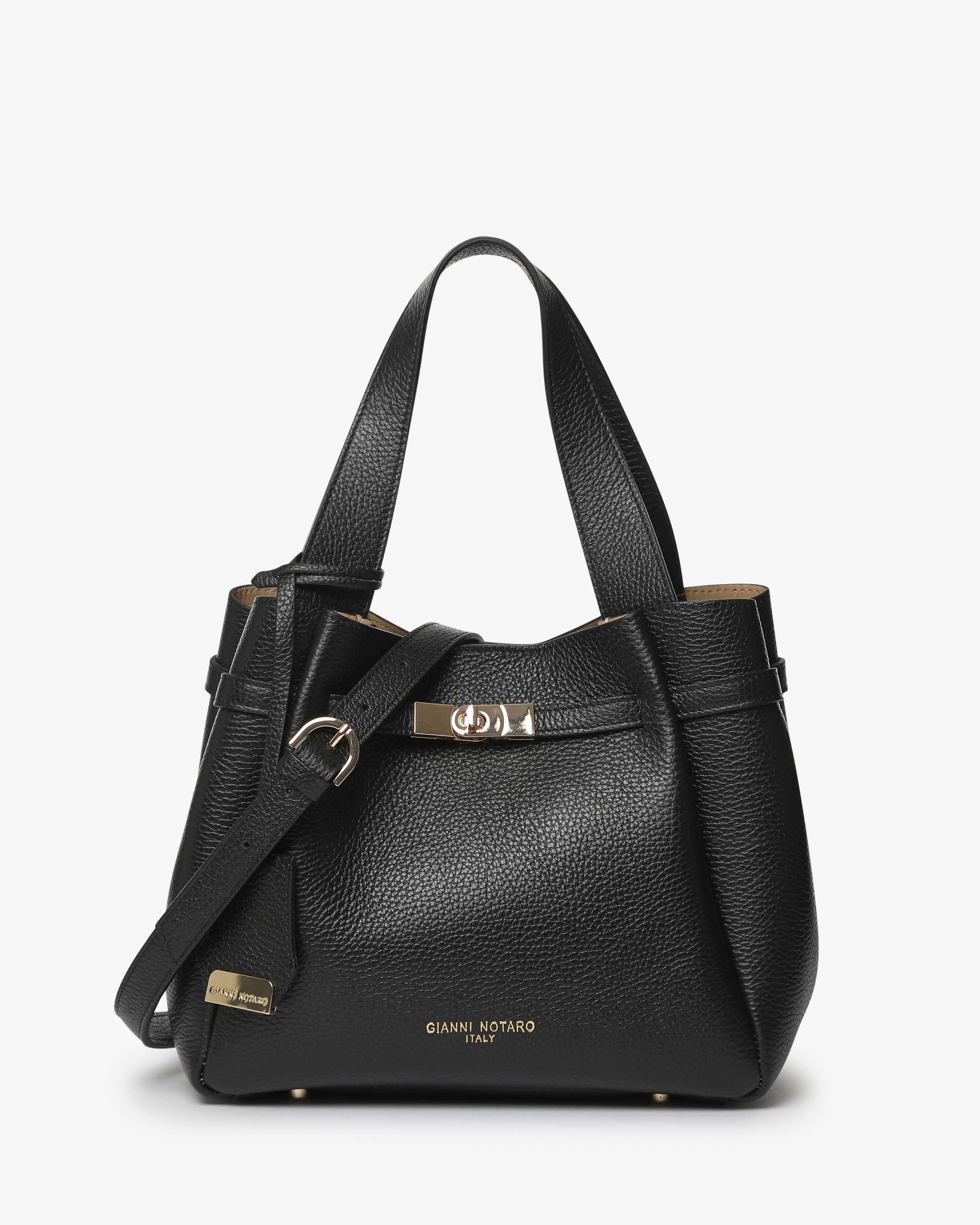 Peonia è la borsa a spalla in pelle martellata dal design elegante e strutturato, con dettaglio chiusura frontale. Dotata di doppio manico, tracolla regolabile e pochette interna removibile. Perfetta per un look raffinato e funzionale.