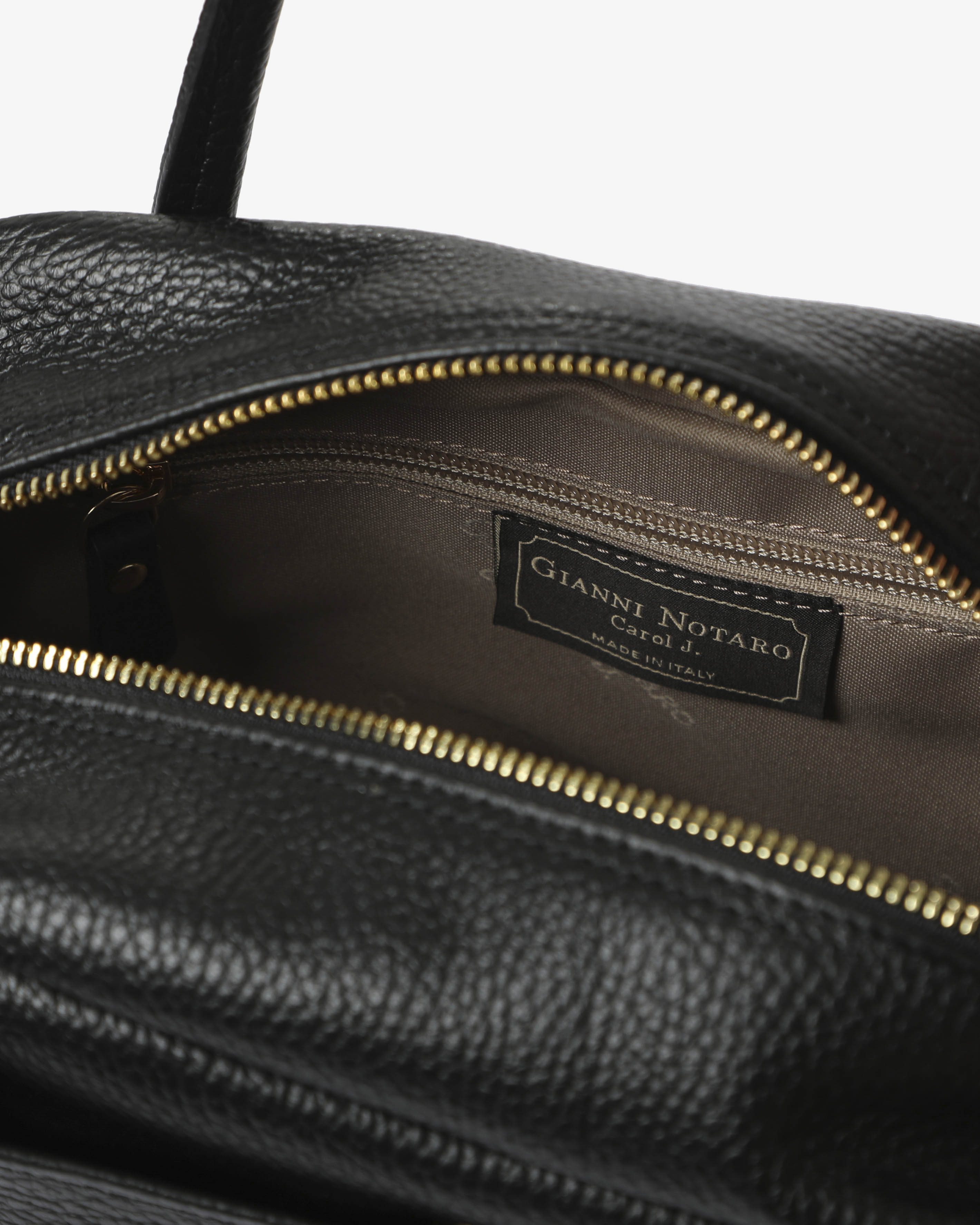 Bauletto " Samira" di Gianni Notaro, in pelle morbida martellata con manici corti. Da portare a spalla o a mano, dotata di tracolla removibile e regolabile, con apertura zip e tasca sul davanti. Ideale compagna per le tue occasioni della nuova stagione.