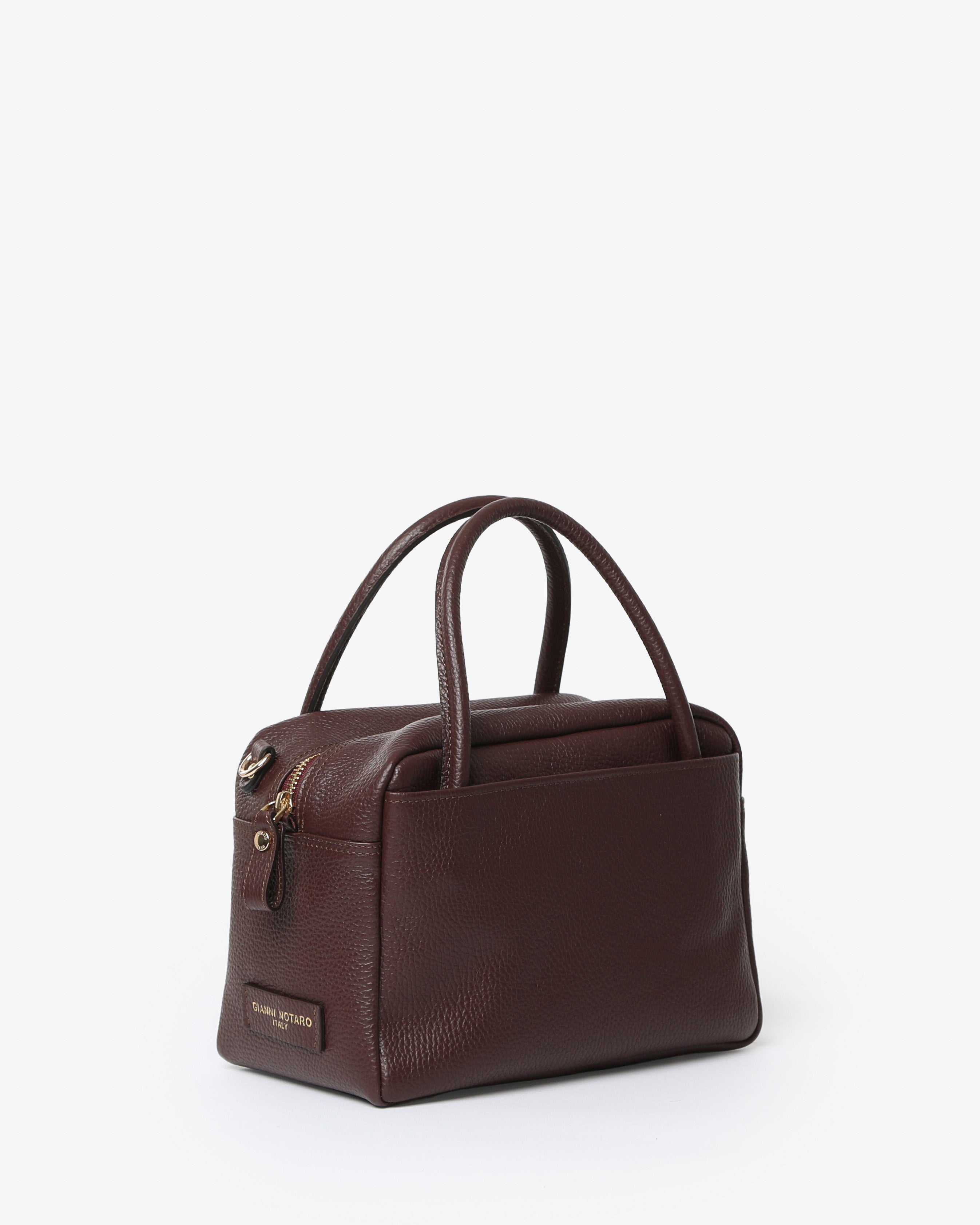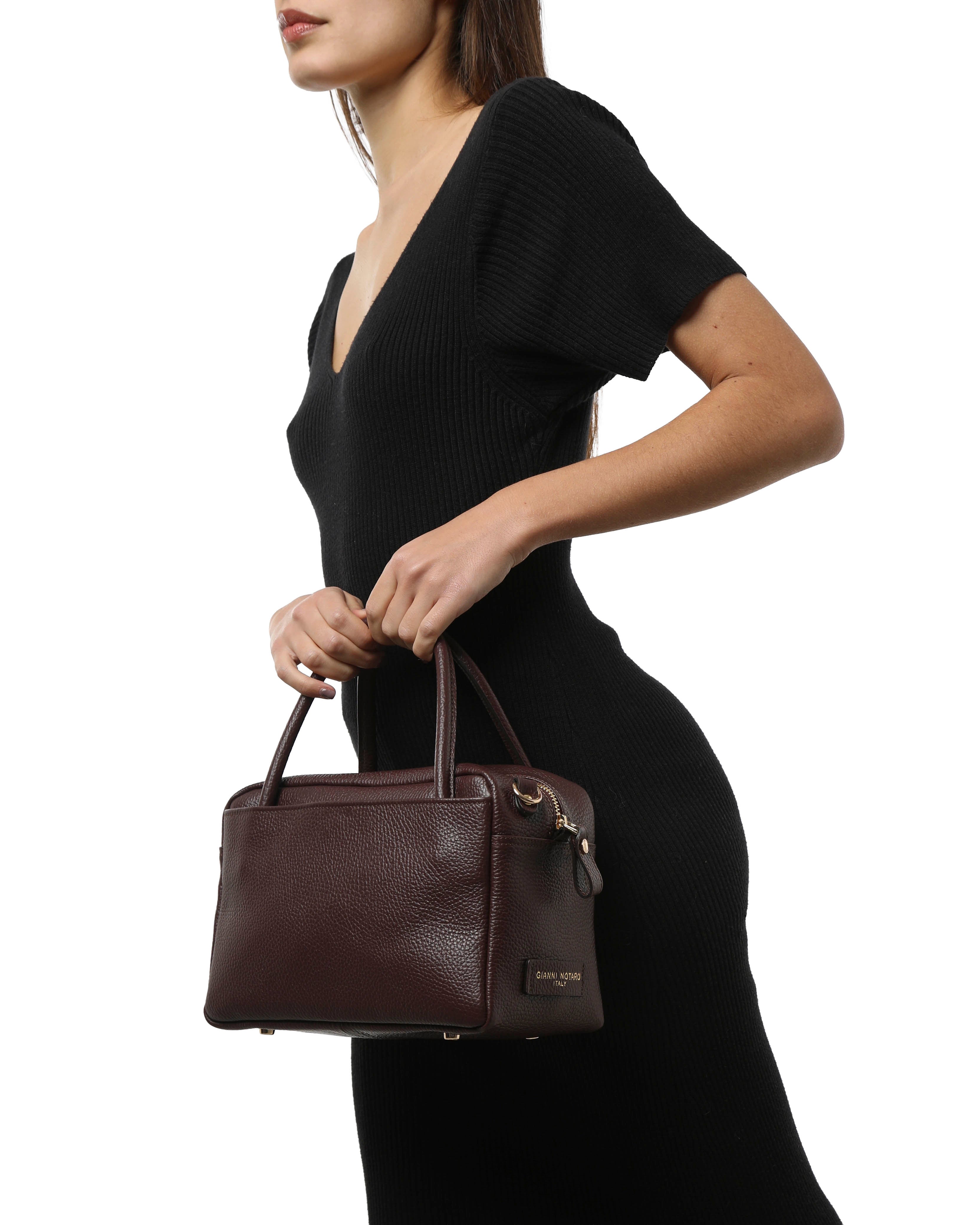Bauletto " Samira" di Gianni Notaro, in pelle morbida martellata con manici corti. Da portare a spalla o a mano, dotata di tracolla removibile e regolabile, con apertura zip e tasca sul davanti. Ideale compagna per le tue occasioni della nuova stagione.