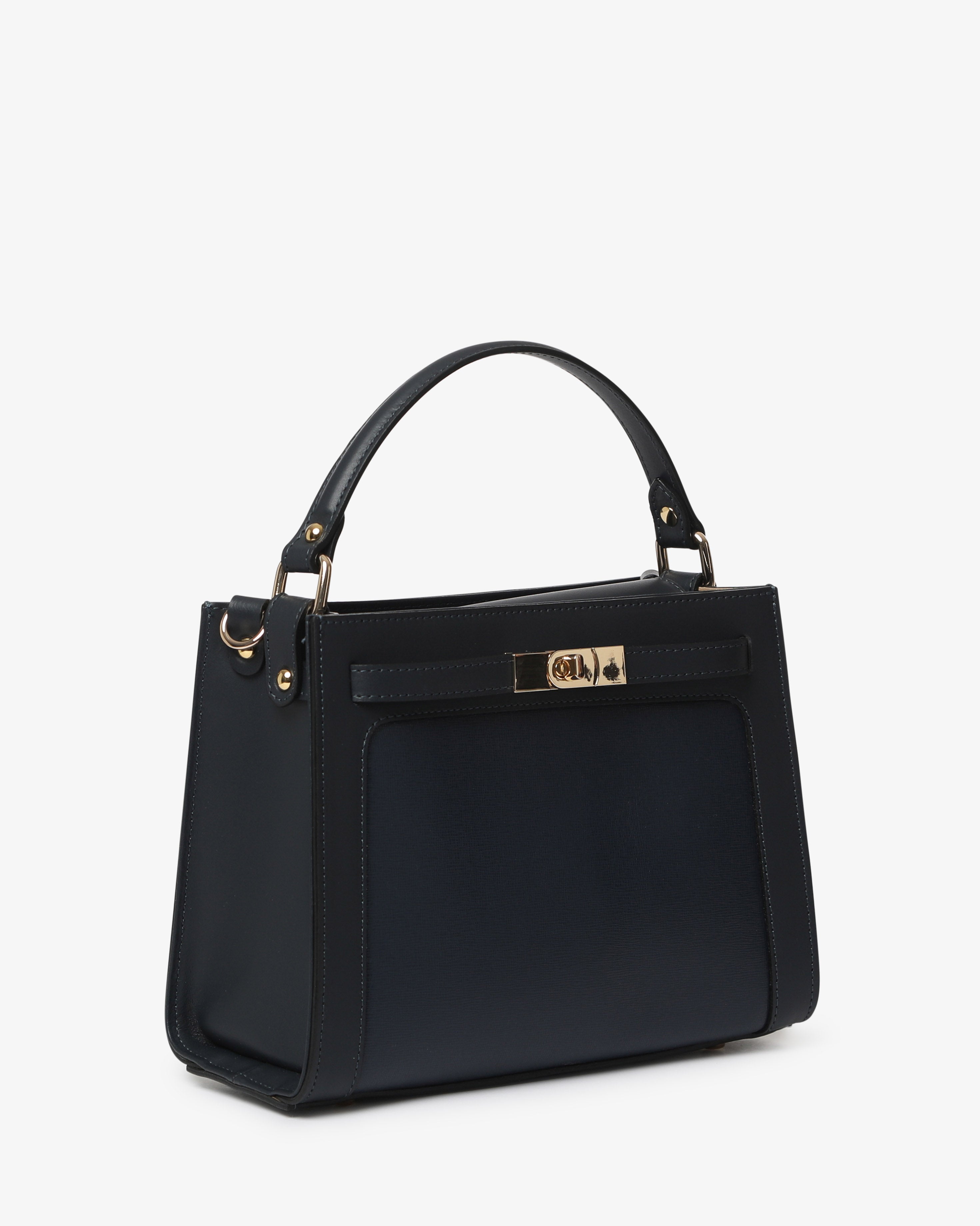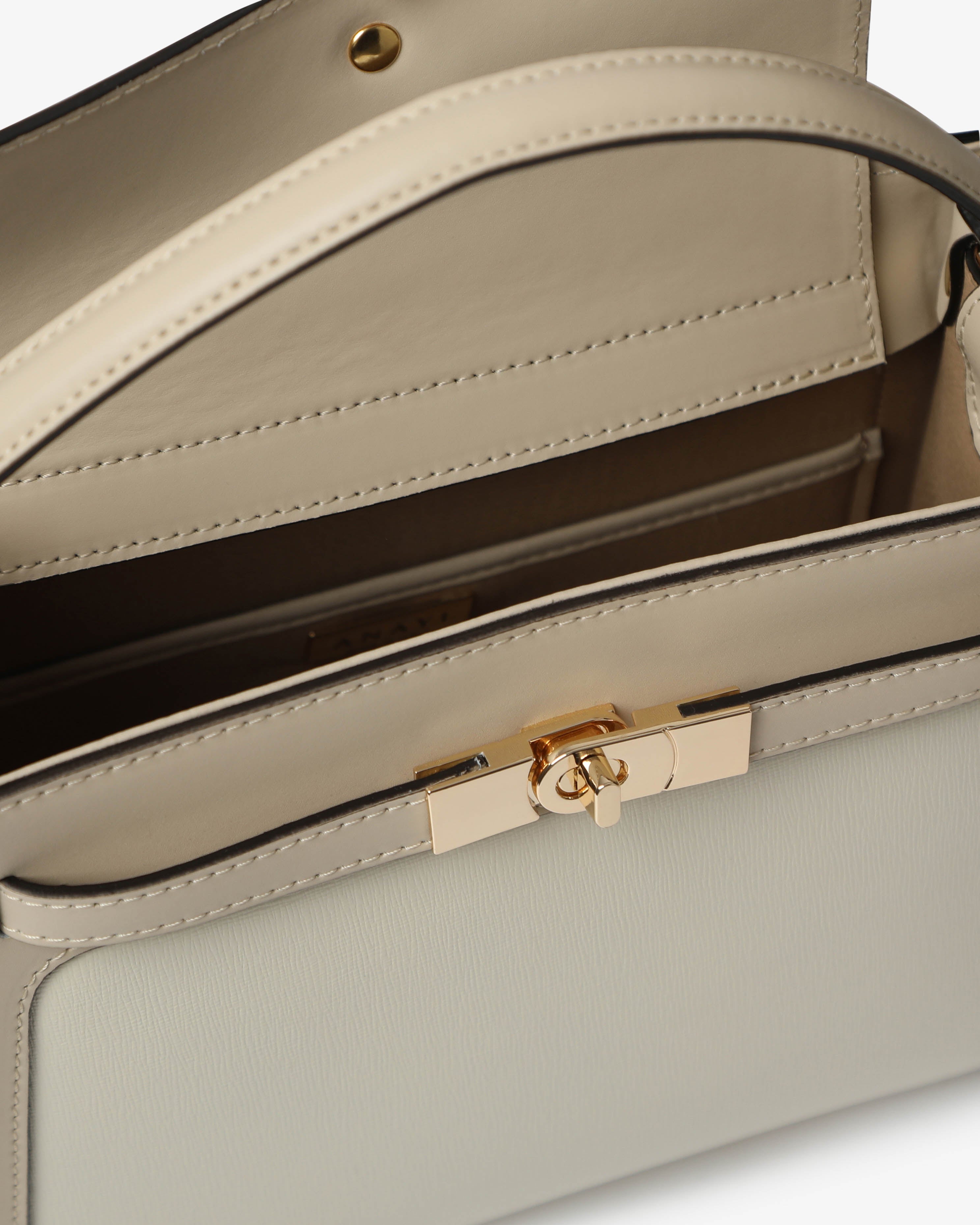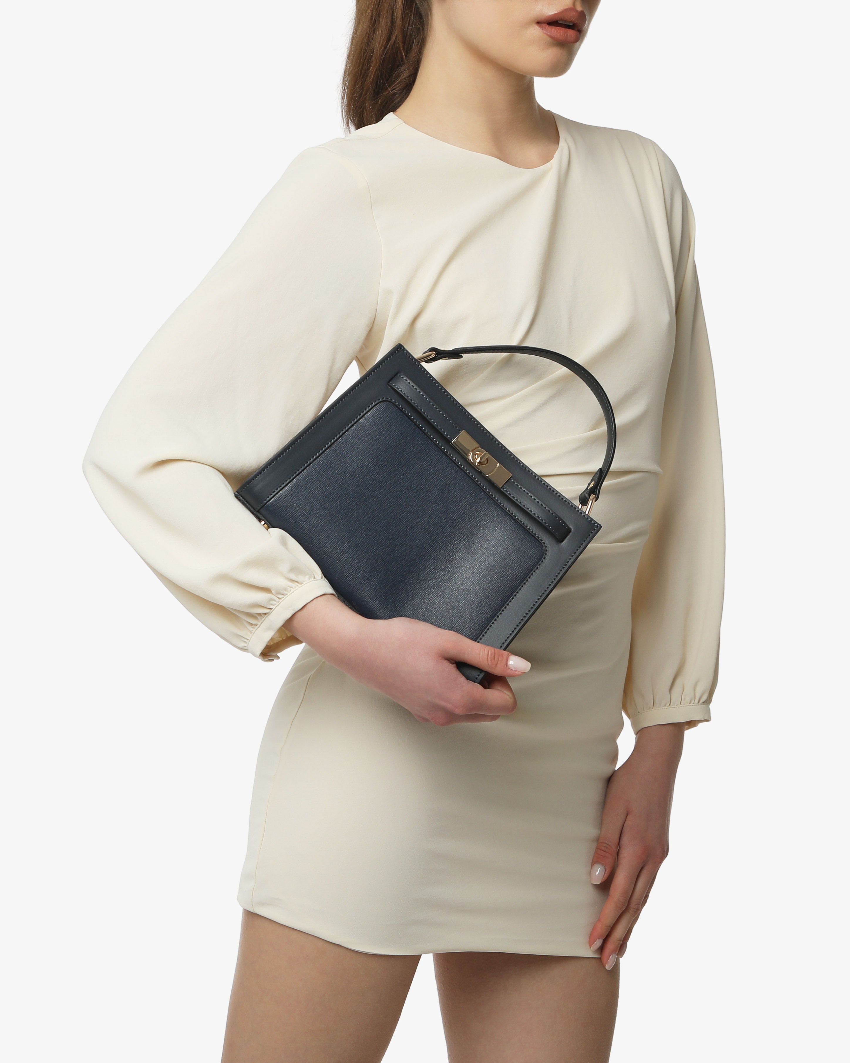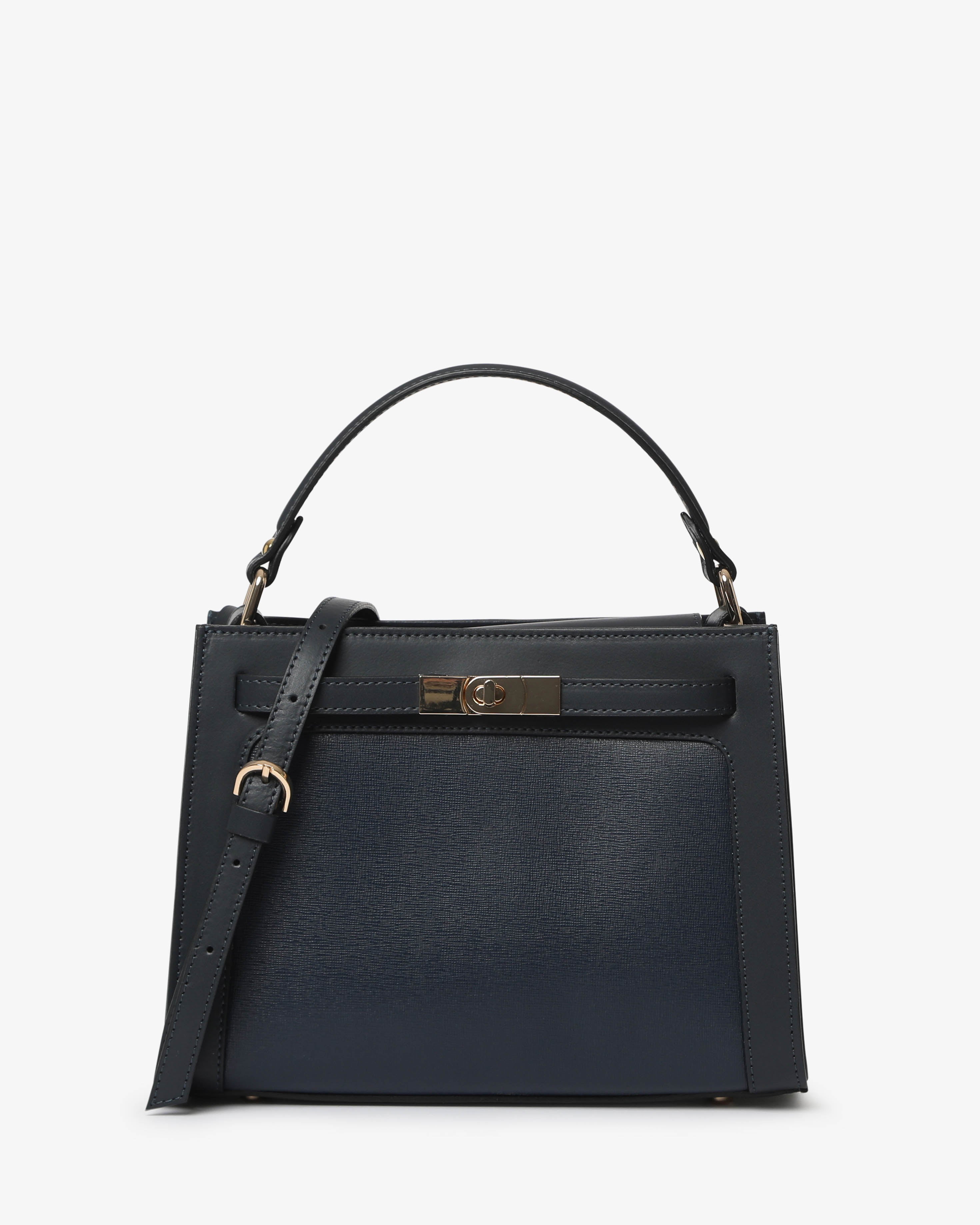 Violet è la borsa a mano in pelle ruga e davanti in saffiano, dal design elegante e strutturato, con chiusura frontale e pannello a contrasto. Dotata di manico superiore e tracolla regolabile, perfetta per un look raffinato e versatile.