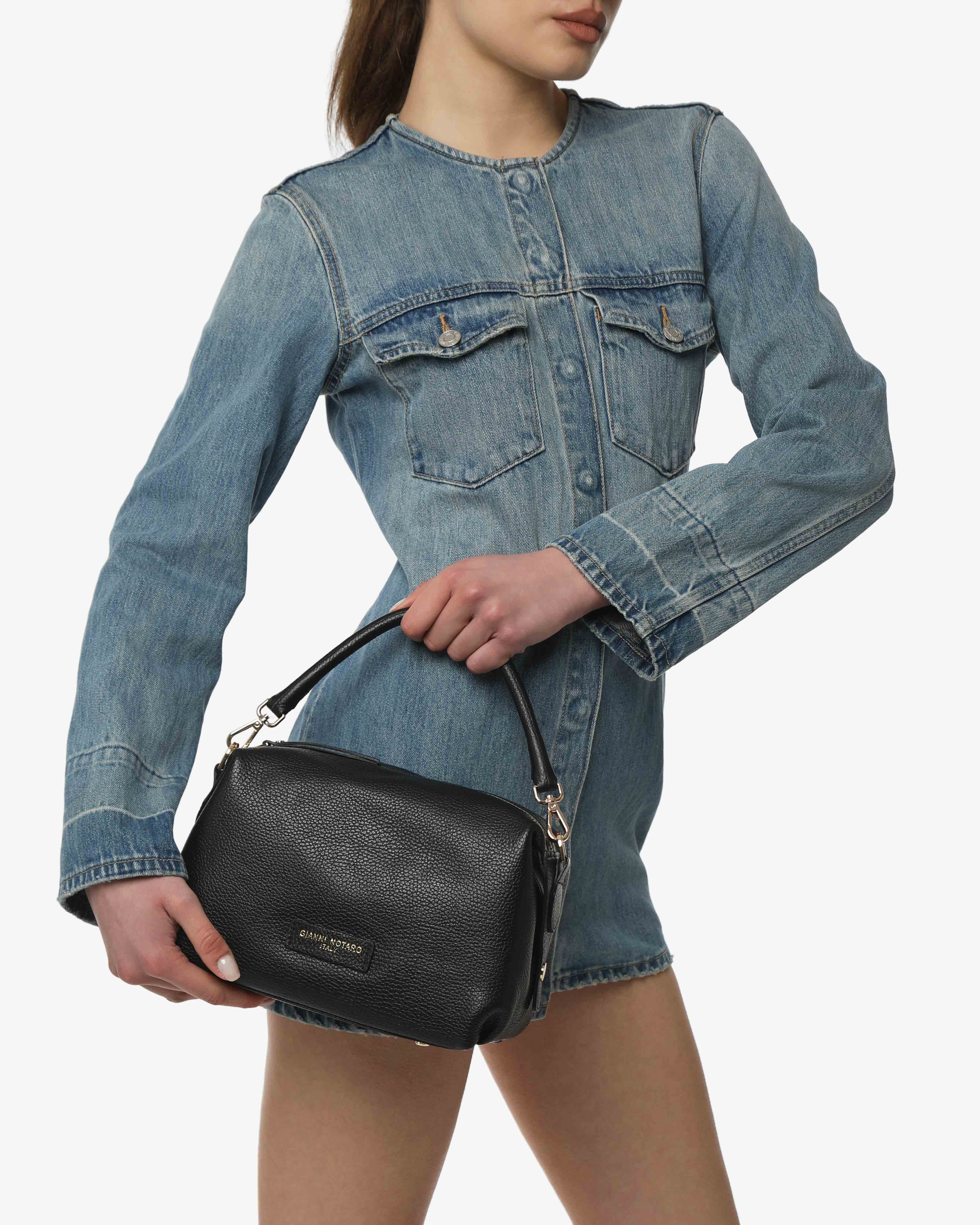 Zendaya è un bauletto in pelle morbida martellata dal design essenziale e contemporaneo. Dotato di manico e tracolla rimovibile, offre capienza e comfort per un utilizzo quotidiano elegante.
